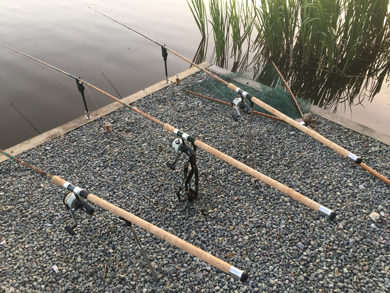 Rods are hand made by myself to my design 12’ 2 piece approx 2 1/2 TC. Landing nets is also handmade to a design by Richard Walker and the indicators are homemade too.