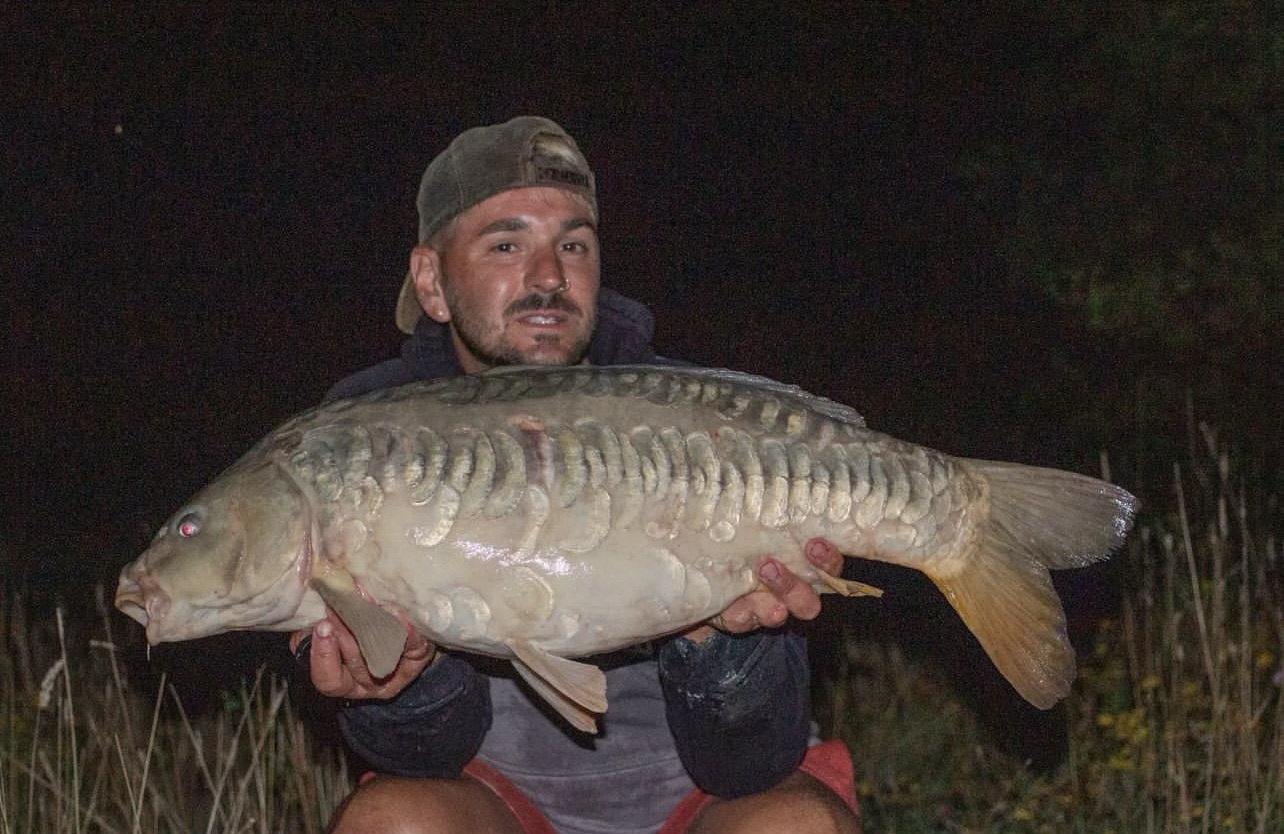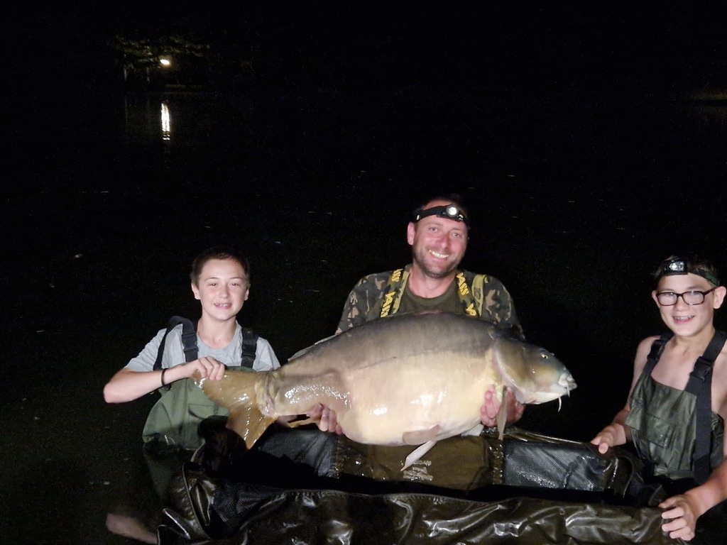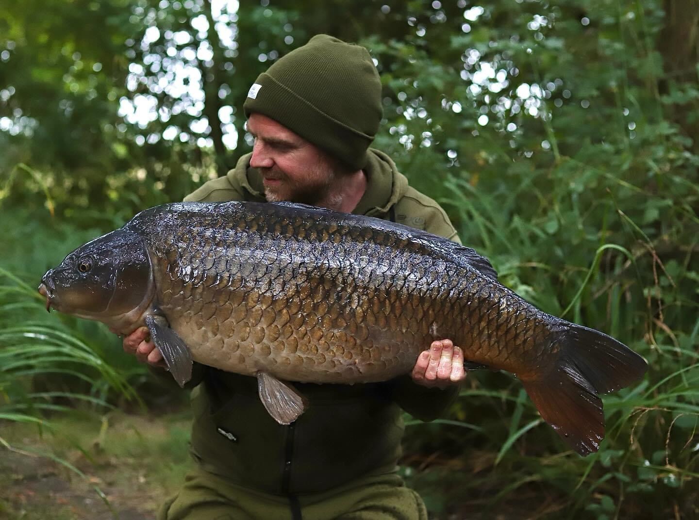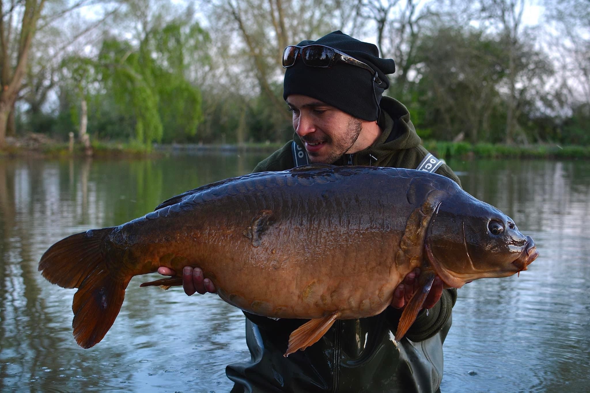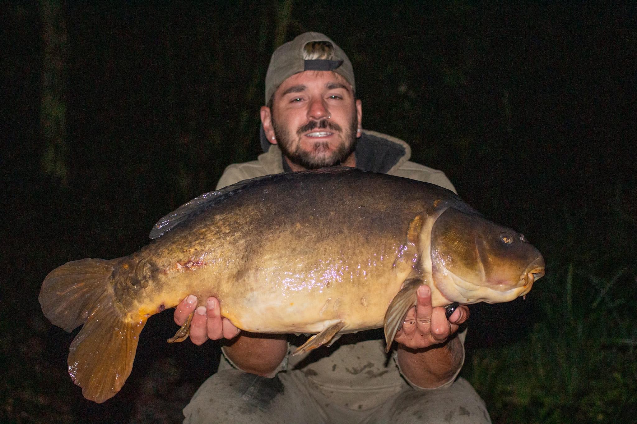 FishOn Ricci, just his second trip to a new syndicate in Essex. 44lb12oz one of the biggest in the lake. A stunning 30+ too. Scopex/Pineapple S2 balanced 13mm over shops fermented particle.