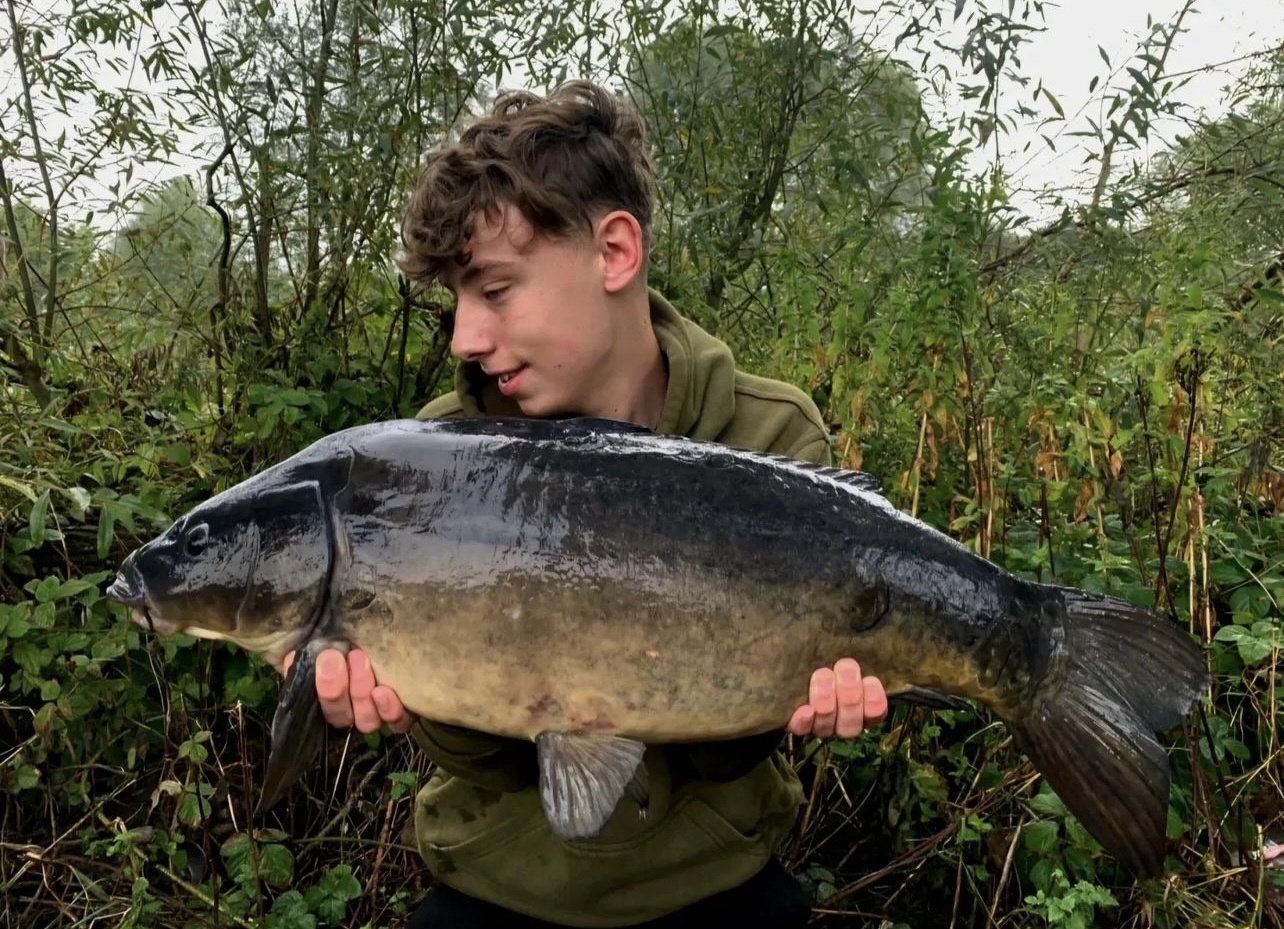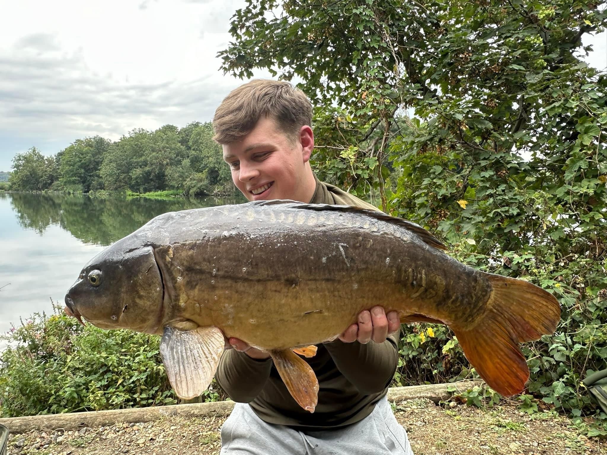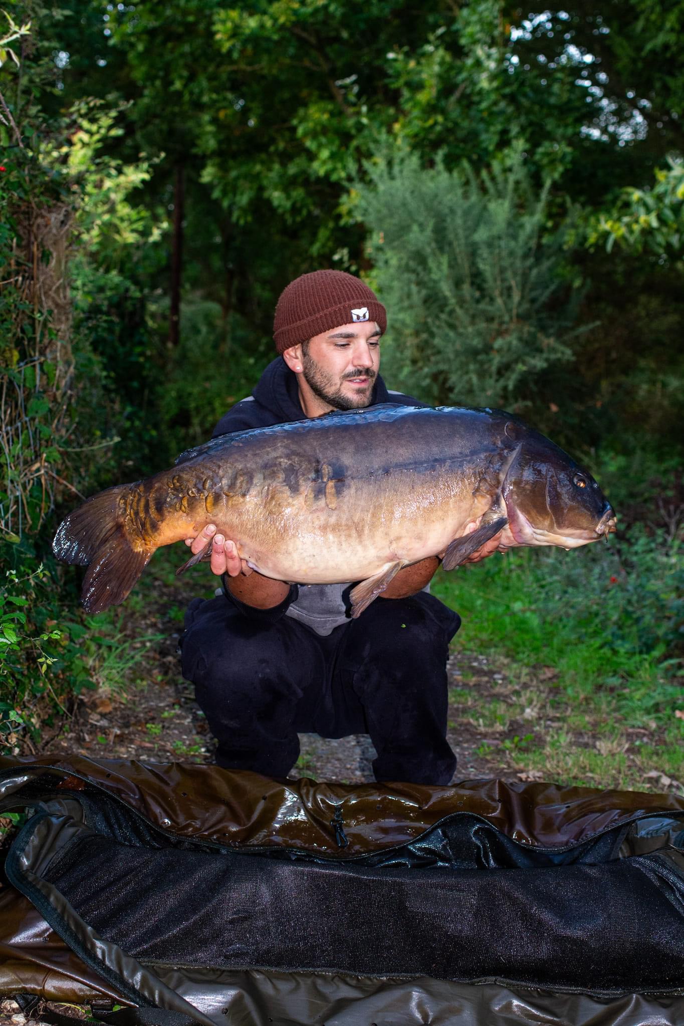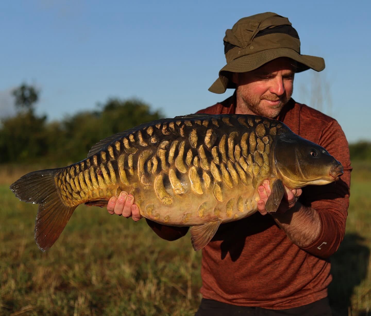 FishOn Ricci, just his second trip to a new syndicate in Essex. 44lb12oz one of the biggest in the lake. A stunning 30+ too. Scopex/Pineapple S2 balanced 13mm over shops fermented particle.
