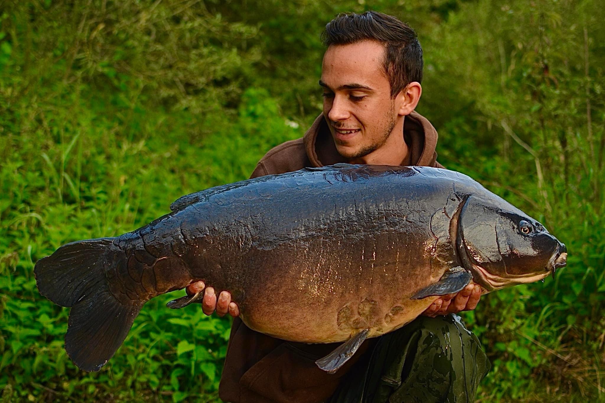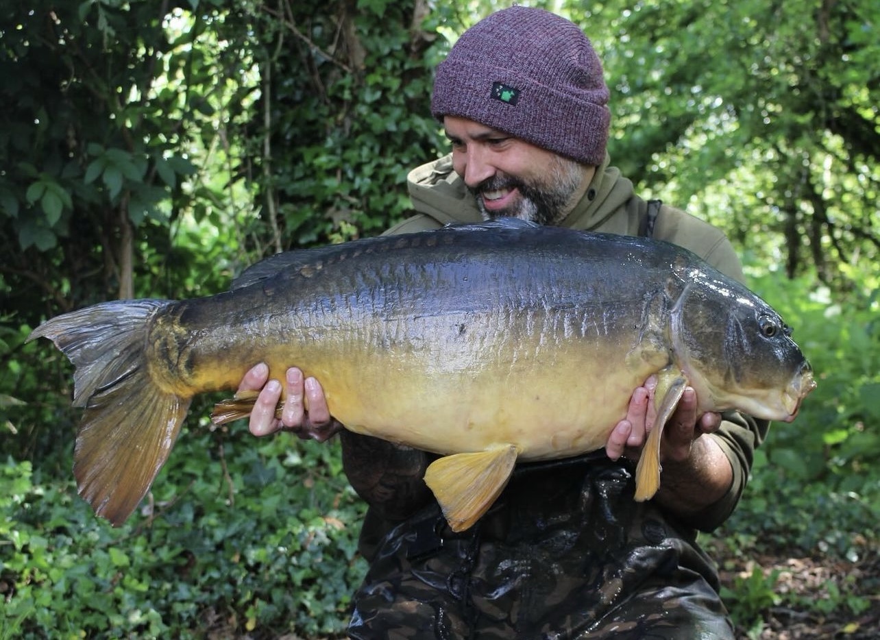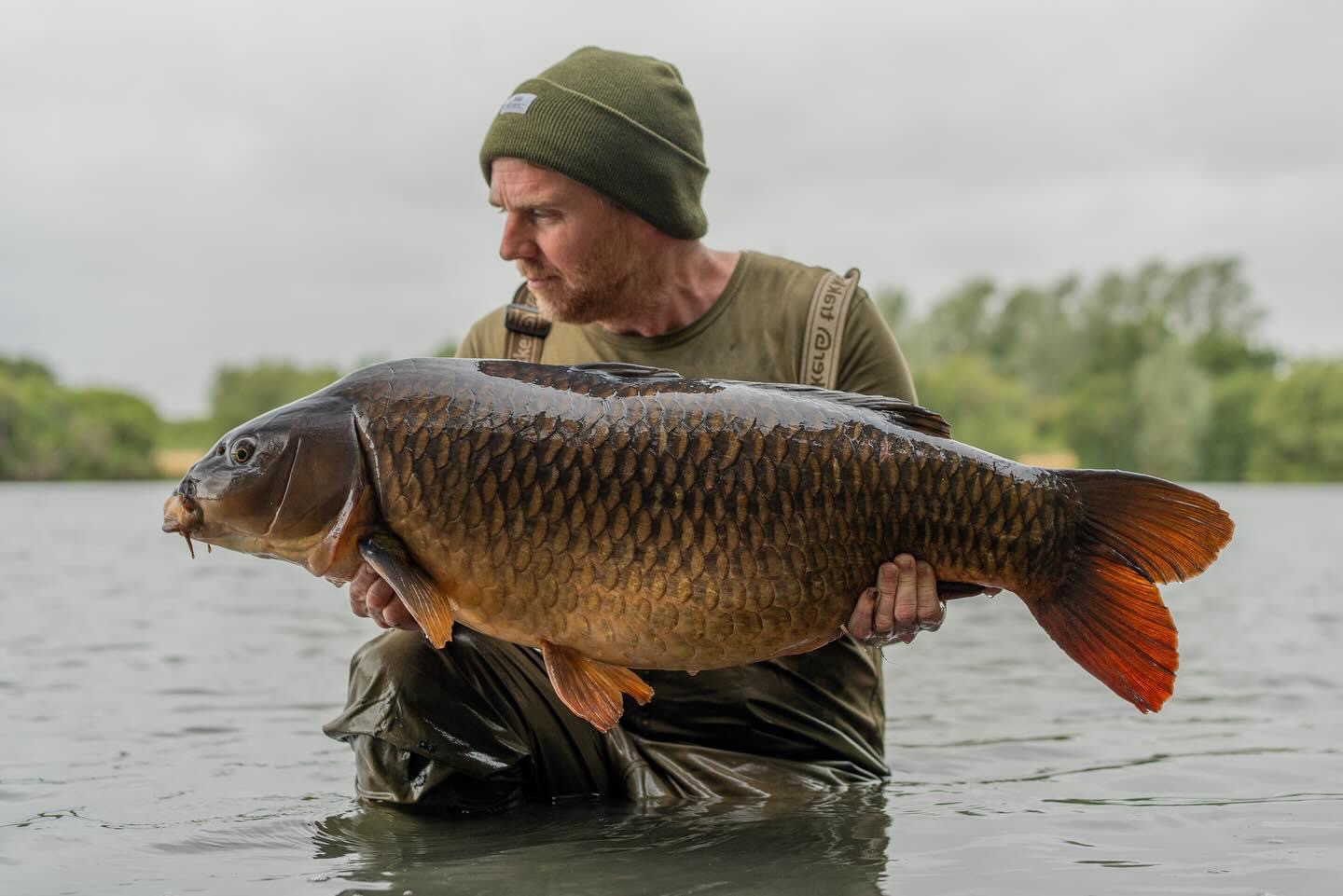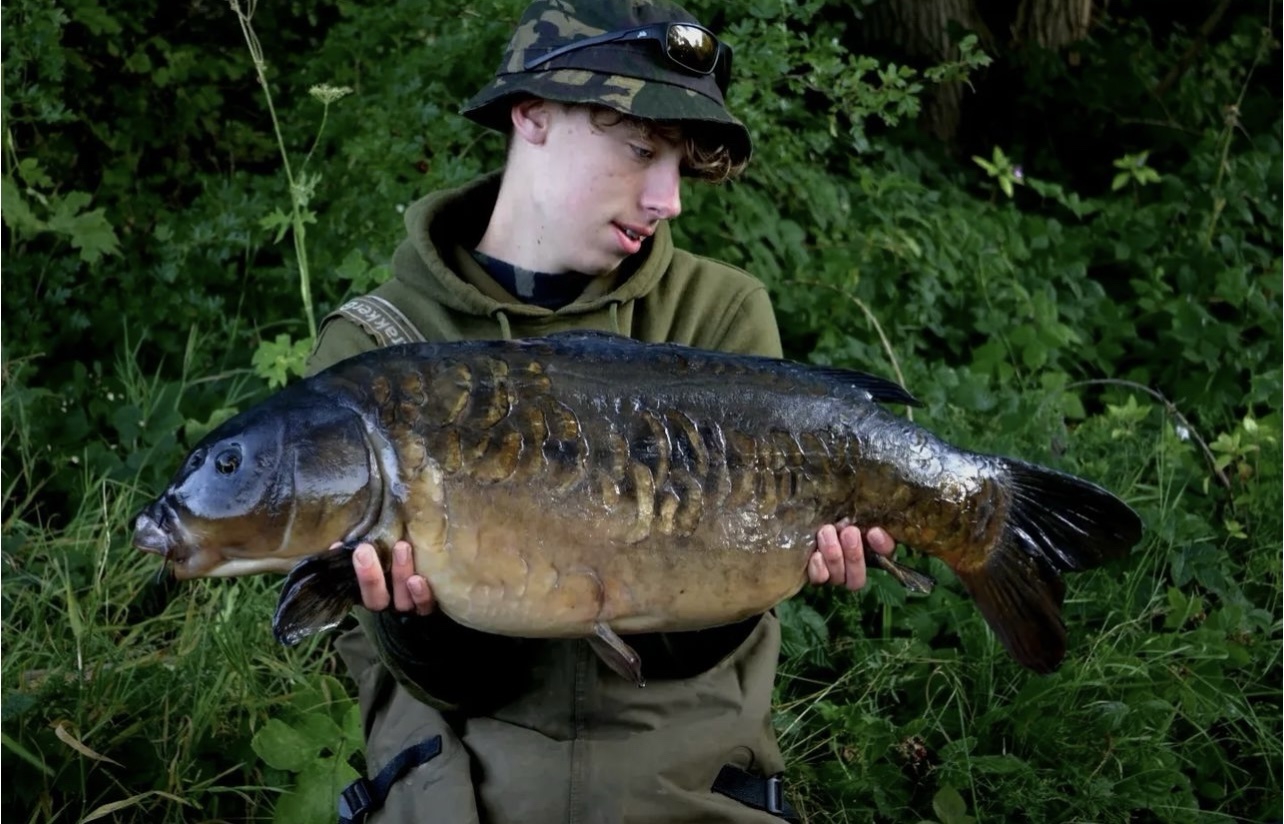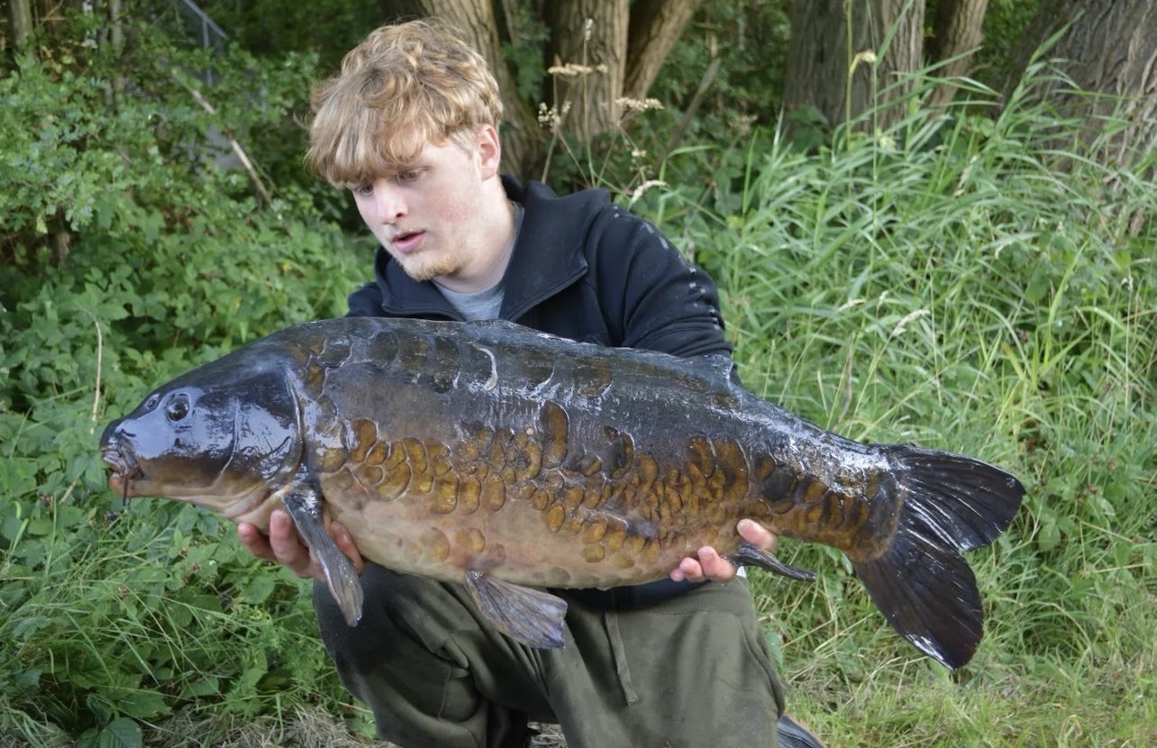 FishOn Ricci, just his second trip to a new syndicate in Essex. 44lb12oz one of the biggest in the lake. A stunning 30+ too. Scopex/Pineapple S2 balanced 13mm over shops fermented particle.