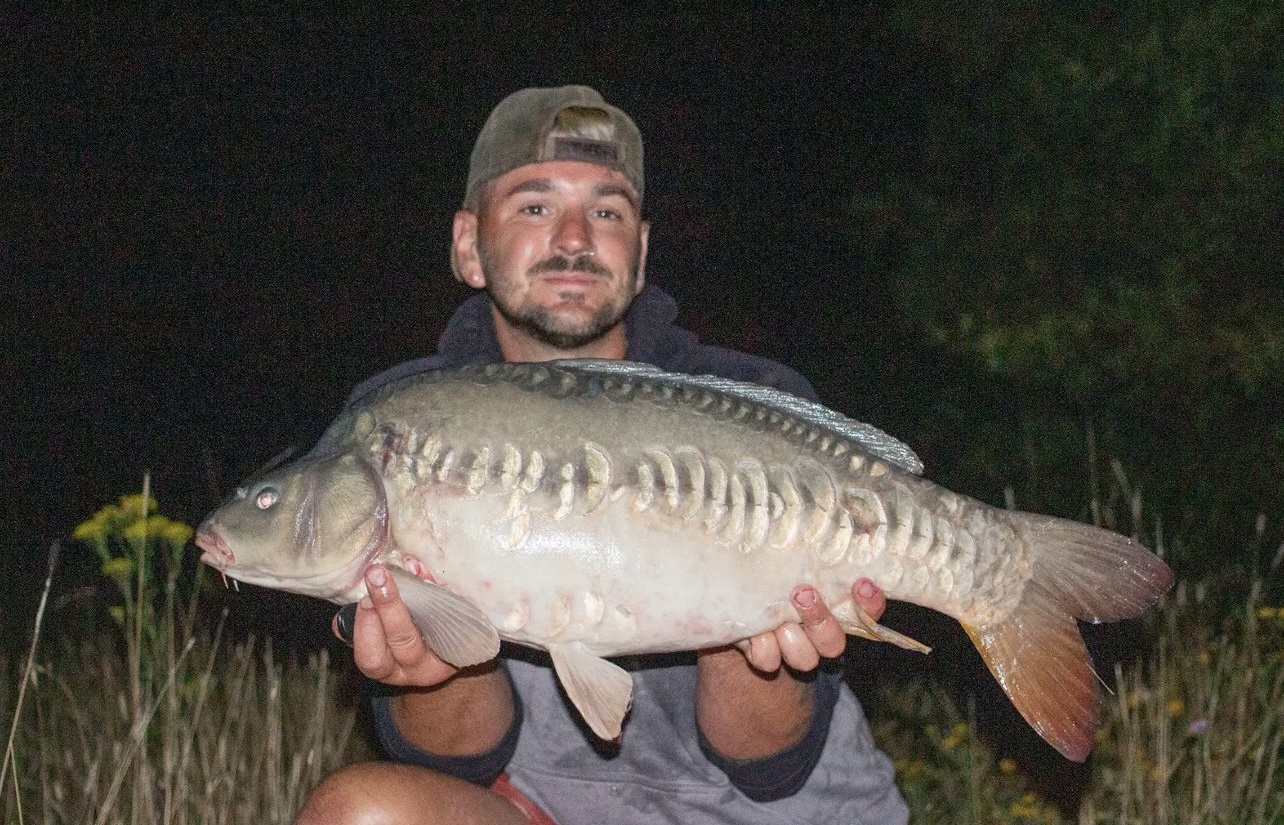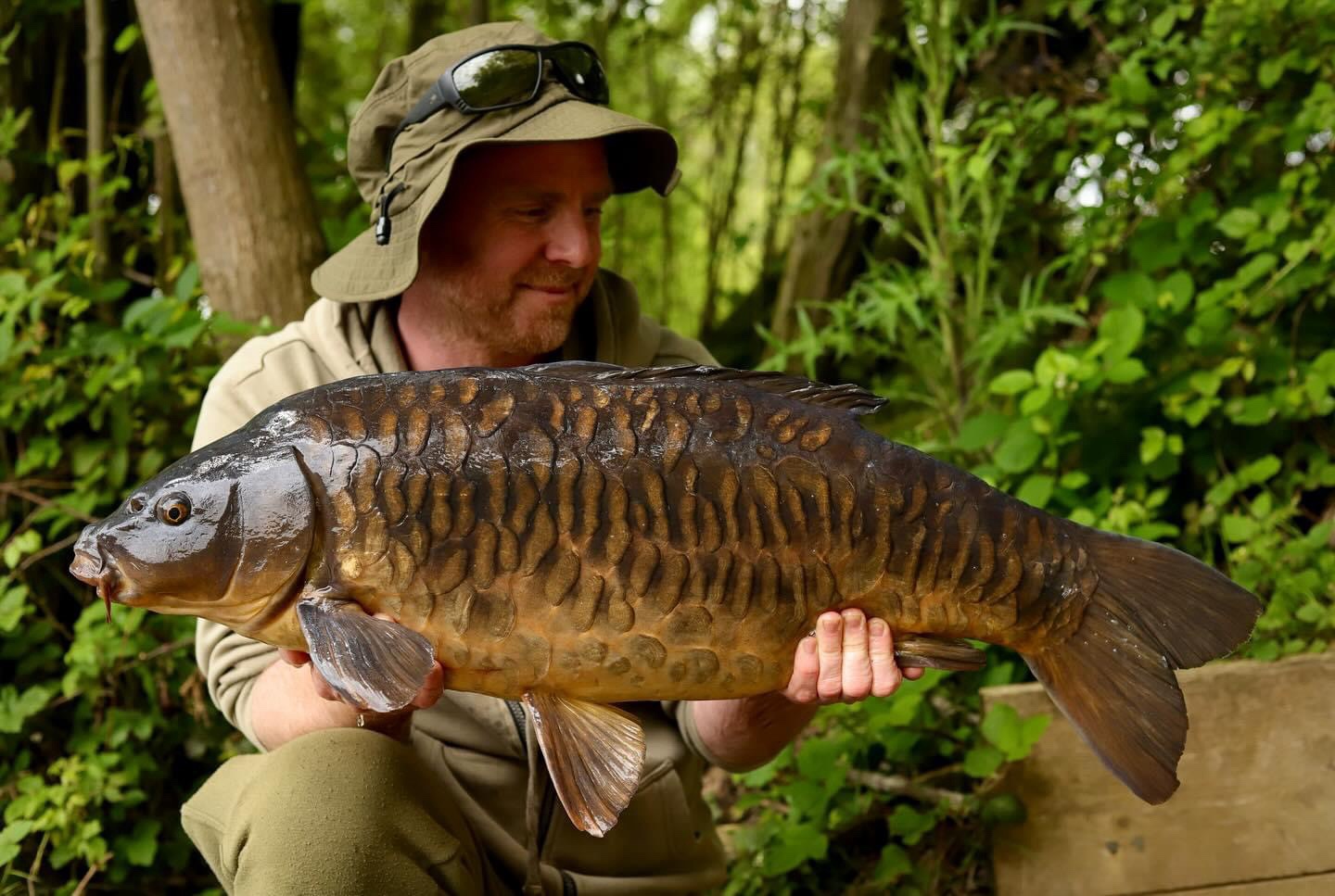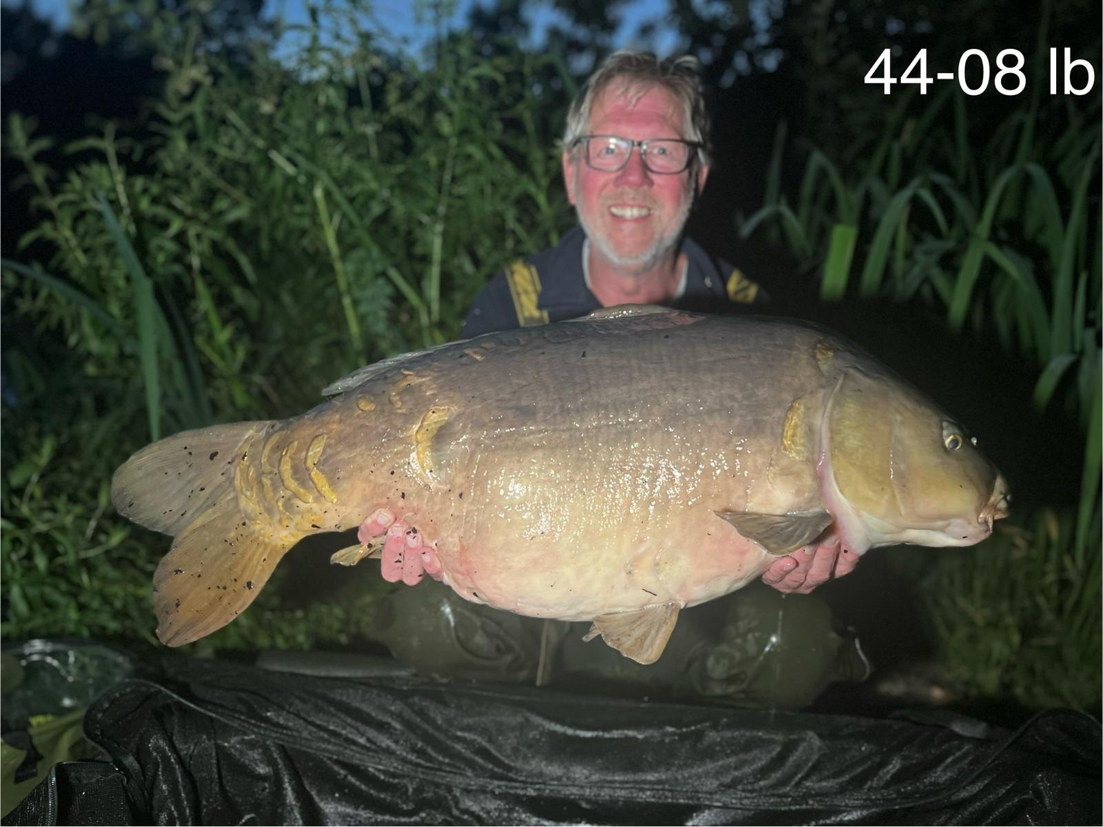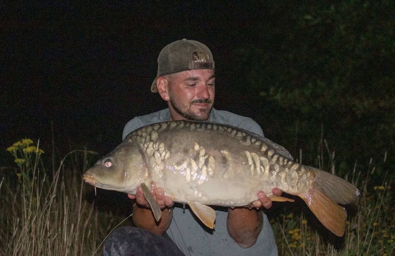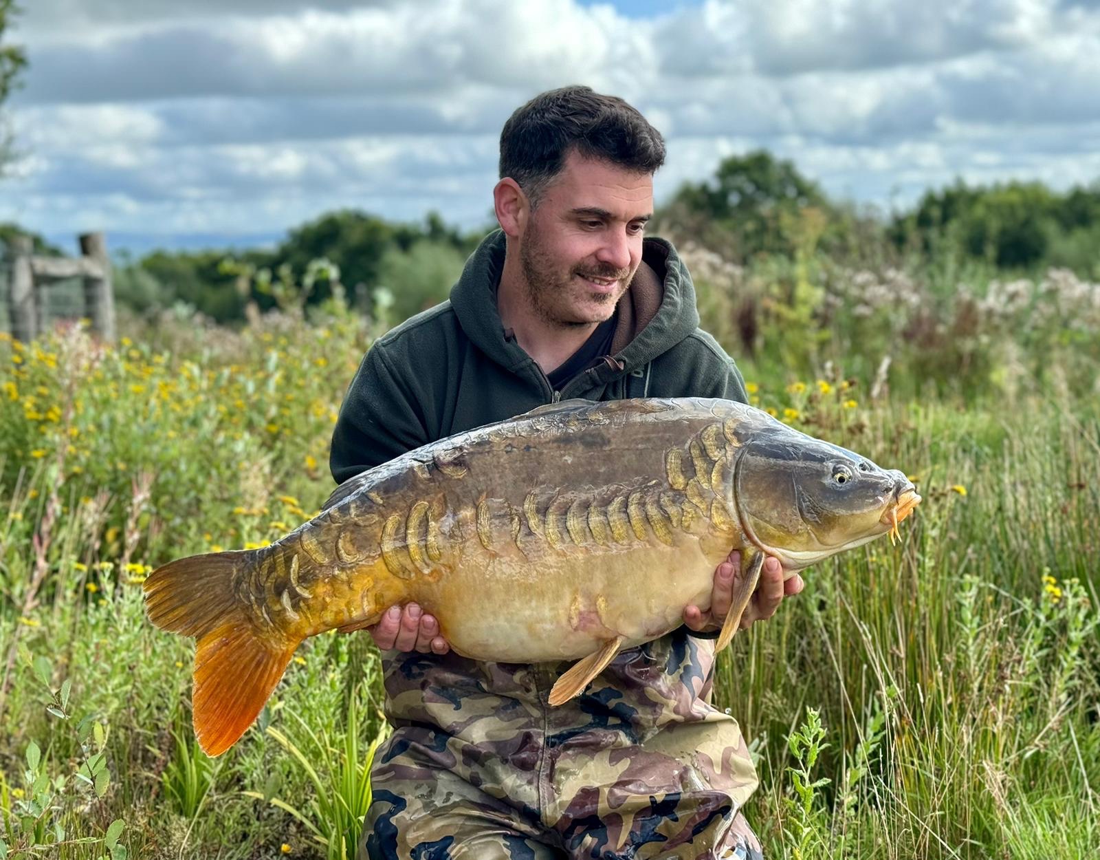 FishOn Ricci, just his second trip to a new syndicate in Essex. 44lb12oz one of the biggest in the lake. A stunning 30+ too. Scopex/Pineapple S2 balanced 13mm over shops fermented particle.