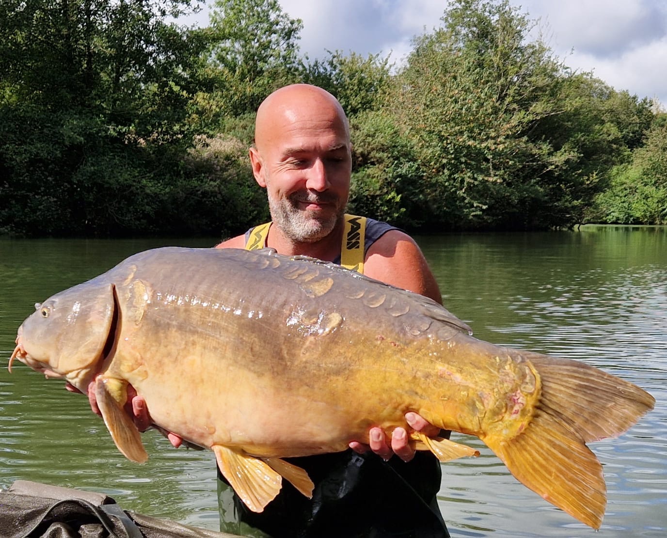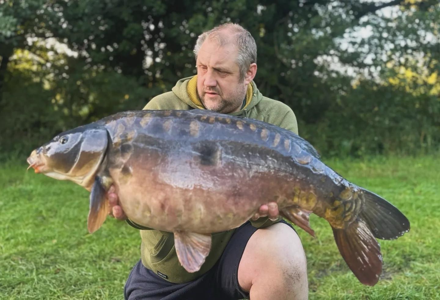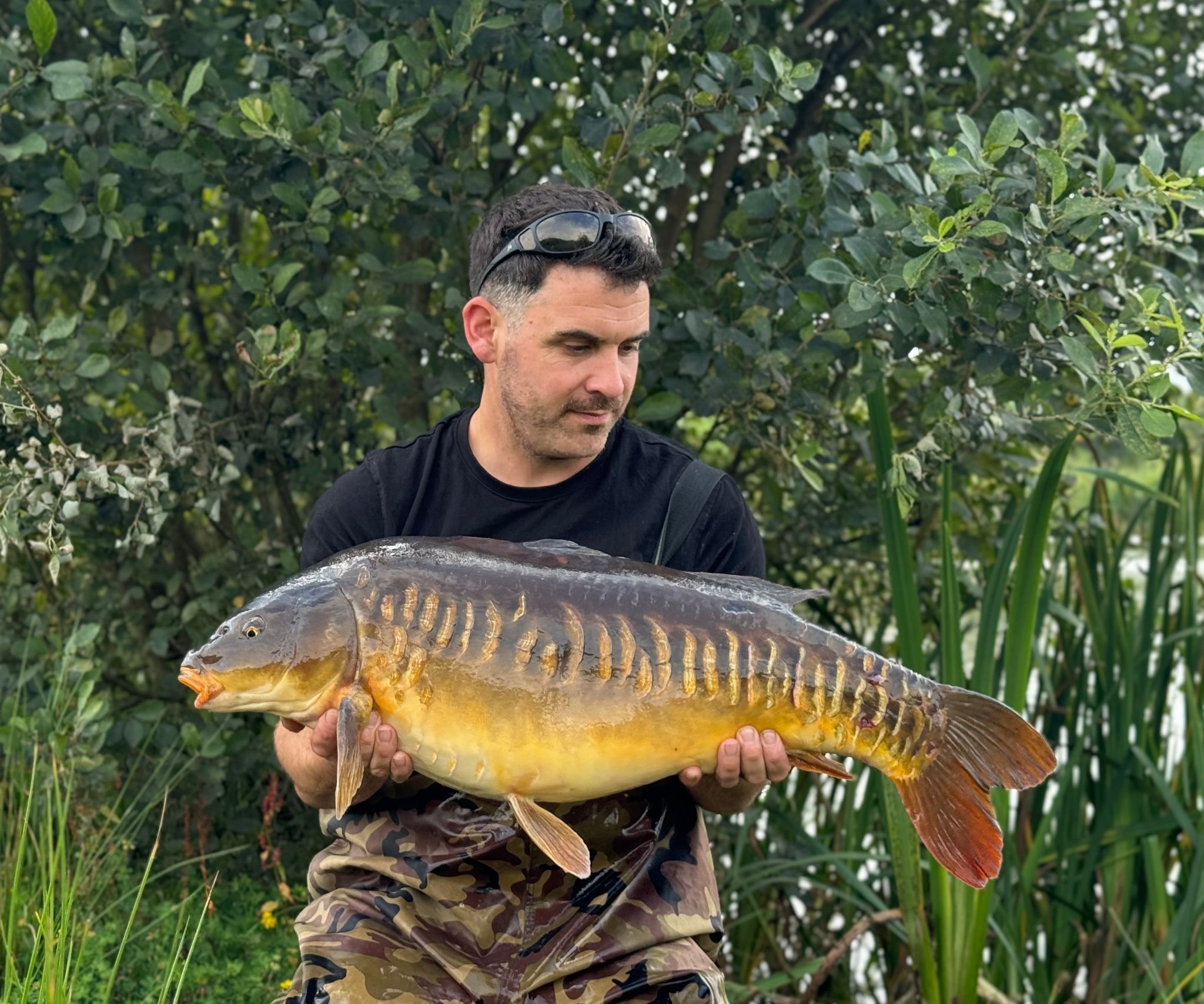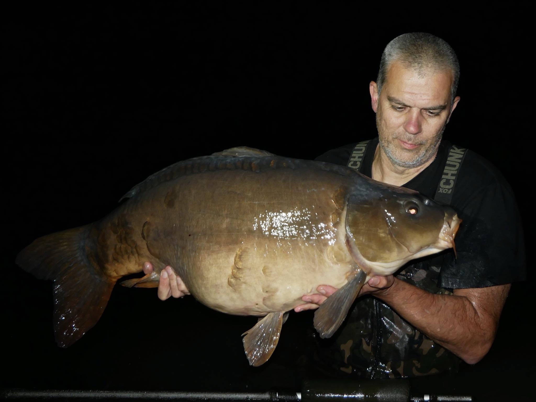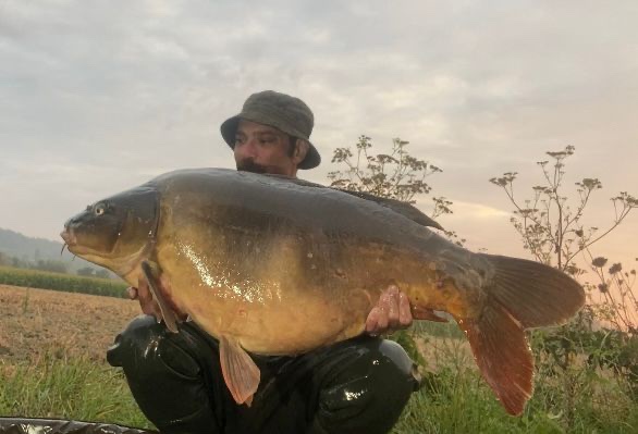 FishOn Ricci, just his second trip to a new syndicate in Essex. 44lb12oz one of the biggest in the lake. A stunning 30+ too. Scopex/Pineapple S2 balanced 13mm over shops fermented particle.