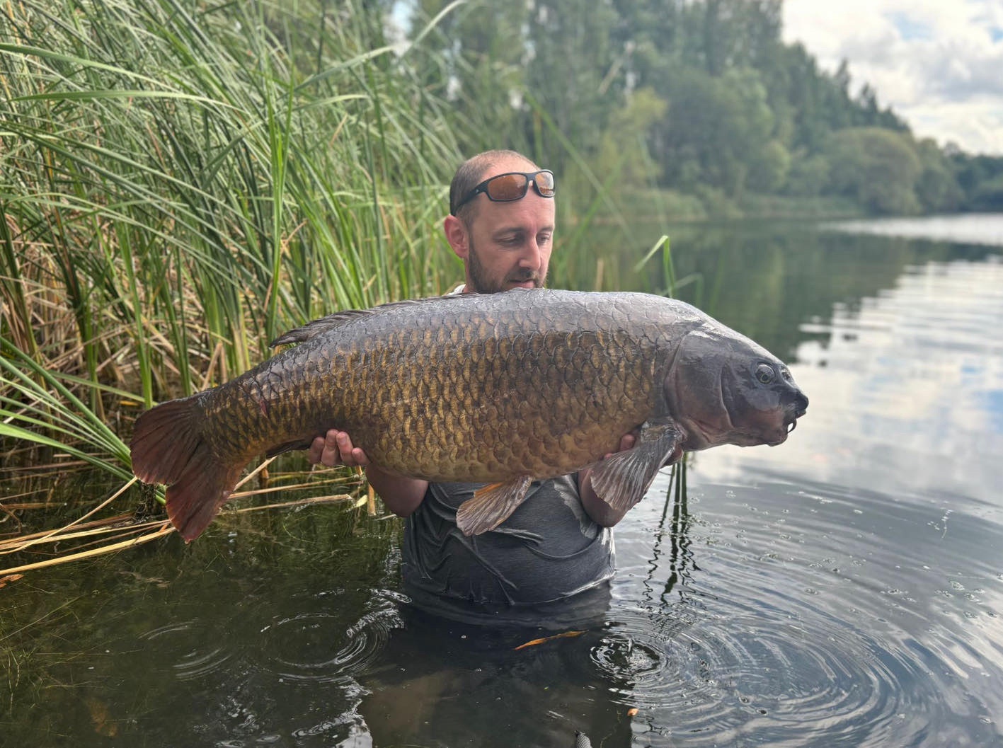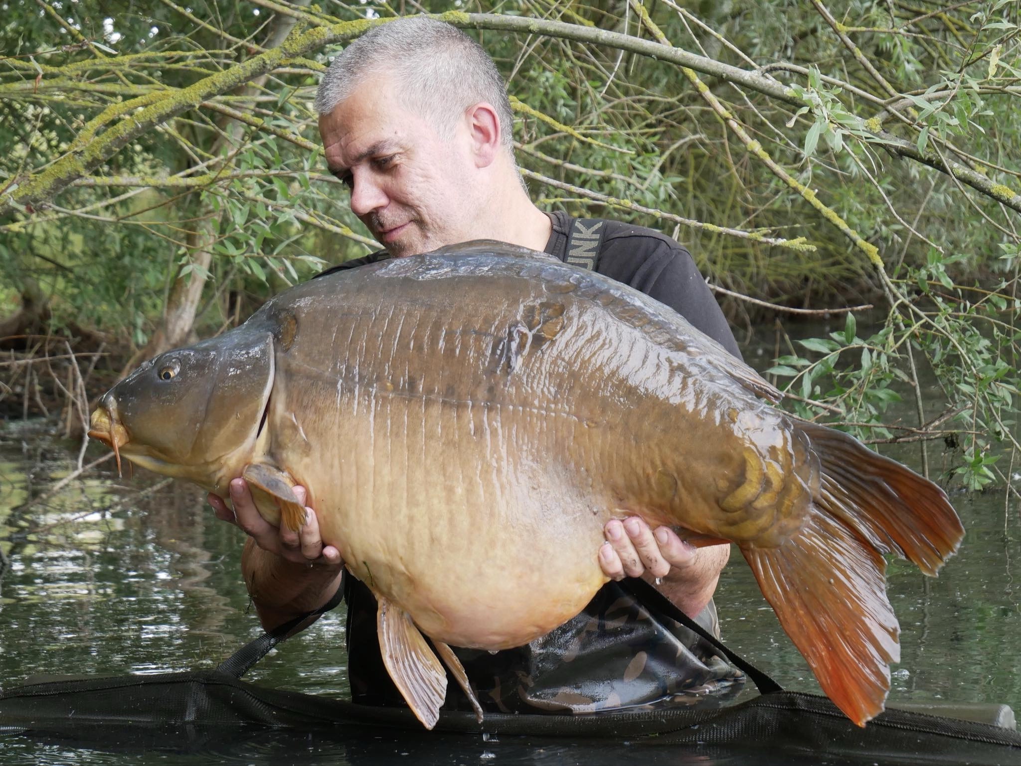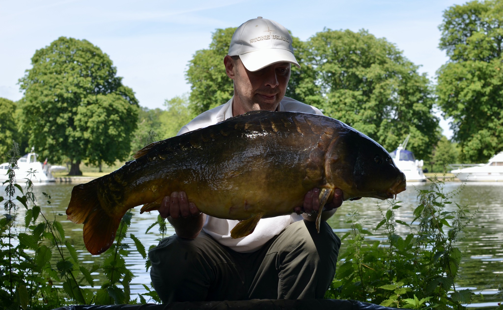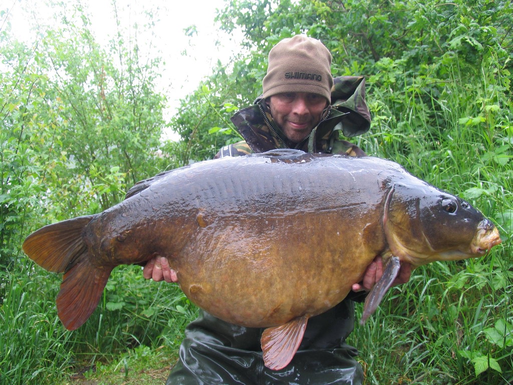 River Medway in Kent. This fish was a well known old Ballast Pit fish from the 80’s & 90’s, that went by the name of the 'Little Leney'. I was told it eventually grew bigger than the fish in the same lake known as the 'big Leney'. It got flooded from the Ballast Pit more than a decade previous to this photo. First into Barden lake, then into the river itself. I caught it miles downstream from where it was initially flooded into the river. It was swept many miles in those initial floods. It took up residence in the Wateringbury stretch. It’s really common for lake fish which get flooded into any river, to stop at the first stretch downstream of where they came in that has a marina. Wateringbury had that marina for this fish to hide in. It’s somewhere for them to escape when the river is in flood every year. A saviour every winter from certain death for a clueless lake fish that ends up in a river. Most of them just get swept to their death when they get flooded in, then out to sea.