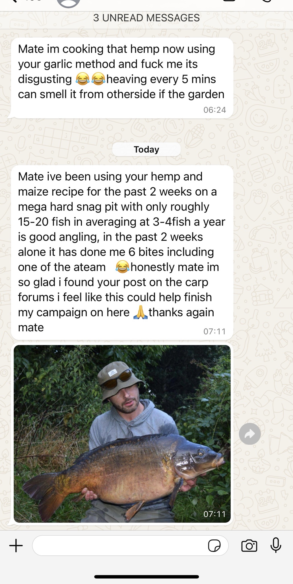 Even when I was not there the fish continued to show on the same spot. Over and over again. I had some of the best anglers around sneak out there in the boat for a look when I was not there... Confused as to why the carp would continually show on the same spot over and over again, when there had clearly been no bait on the spot for many days. Visibly to their eye there was no bait on the spot. It was only three foot deep and the water was crystal clear. There had been no bait on the spot for three or four days since I had left, but still the fish continued to show one after the other. They told me. This eventually led to said anglers asking, why is this happening? The answer was a build up of minerals and the fermented garlic, which I was applying through the hemp. This was leeching deep into the gravel. Those fish, would continue to scour the bottom out, showing like crazy many days after the last grain was long gone. It perked the attention of the better inquisitive anglers, who had never seen the like before.