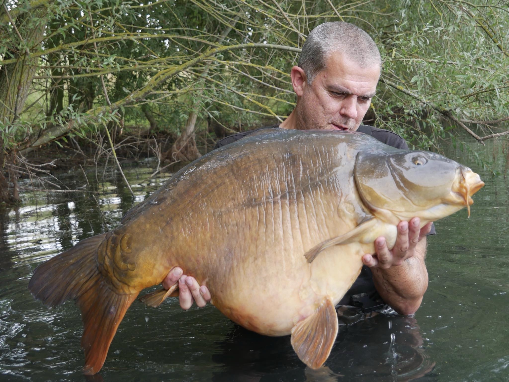 If anyone remembers the very beautiful linear that Dave Lane caught from Sonning Eye at a similar time to him landing the big fish the Eye. It was a very spectacular long linear of epic proportions. As I have previously explained, all of these carp that Sonning contained back then were ex Thames carp, flooded in naturally in the first place. Including the Eye. That linear was a very classic Thames carp. They become land locked, until the next massive flood returns them to the river from wench they came in the first place. When Sonning floods, it is joined to the river in often ten places along nearly a mile of bank that borders the river Thames. That linear was one such fish that flooded back into the river. Although the monster fish the Eye was never seen again, the linear that Dave Lane caught from the lake at Sonning was seen again, I saw it myself in the Thames. It was caught from the Henley to Hurley stretch many years ago. Then it went on the missing list for the best part of a decade. It had got flooded back into the Thames, and the famous Eye clearly would have gone with it at the very same time. Considering that the linear only ever got caught ONCE when it entered the river again, who’s to say that the Eye did not survive and just go onto the missing list. The aforementioned stretch is one of the longest on the Thames, and most of it has zero bank access. It was at the Hurley end of this stretch that I would encounter the stunning beast on a Summers day. I was fishing from an island. It was an absolute dream, no public, no dog walkers, complete peace. On the front of the island I had the weir on the Hurley stretch, the stretch which at the time contained the former Thames record linear. A completely different fish to the Sonning linear spoken about here. On the back side of the island, I had the lock cut of the Henley to Hurley stretch. There are three weirs at Hurley, all connected by back channels. The former Thames record linear used to live in one of these back channels for many years. It's where it was first caught from as a completely unknown fish. I had to boat my kit across the lock cut to access the island (no longer possible). One day I saw a fish cruising between the EA tugs moored there, a fish that blew my mind. It was the Sonning linear. It was now absolutely massive. It had been on the missing list since a bloke off the old Cemex forum “ExKingsMeadChef” had caught it further up the same stretch some decade before. I sort of became obsessed with catching him for a while. Took my eyes of the main prize slightly. I put that Sonning linear bigger than the Thames record, which was 47lb at the time. Stupidly long, and absolutely jet black. Carp simply do not get anymore proper than that fish. It’s been missing again ever since I saw it that day. This was nine years ago now. It’s very likely brown bread.