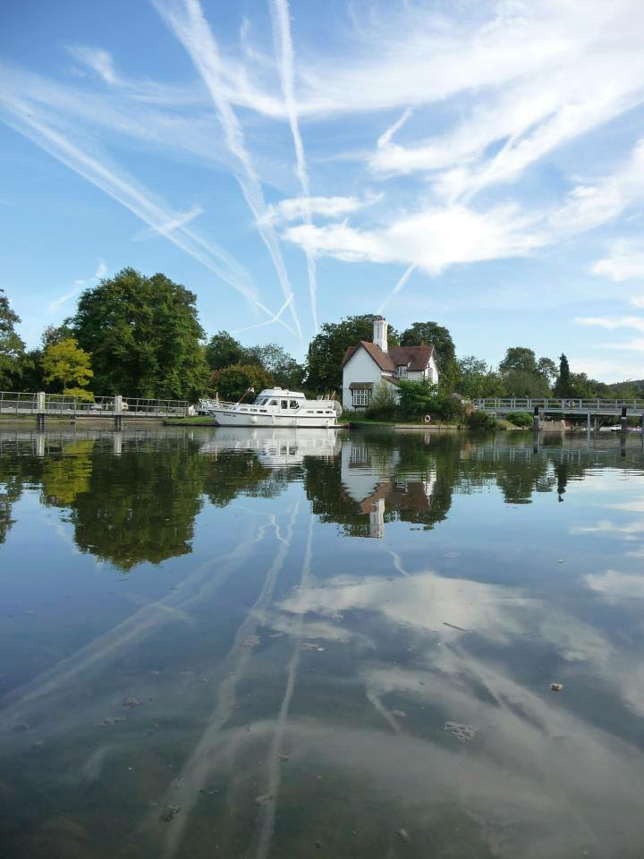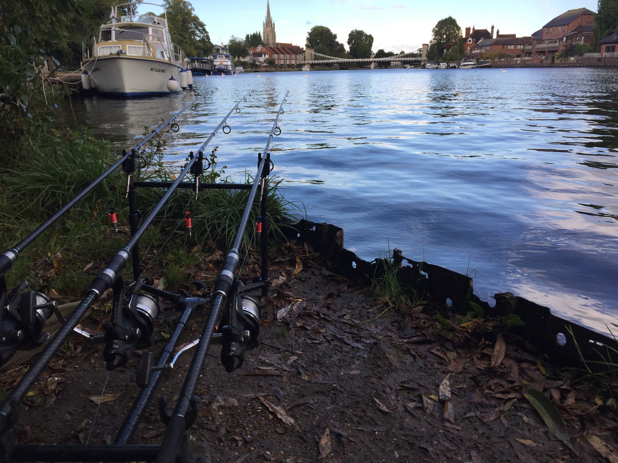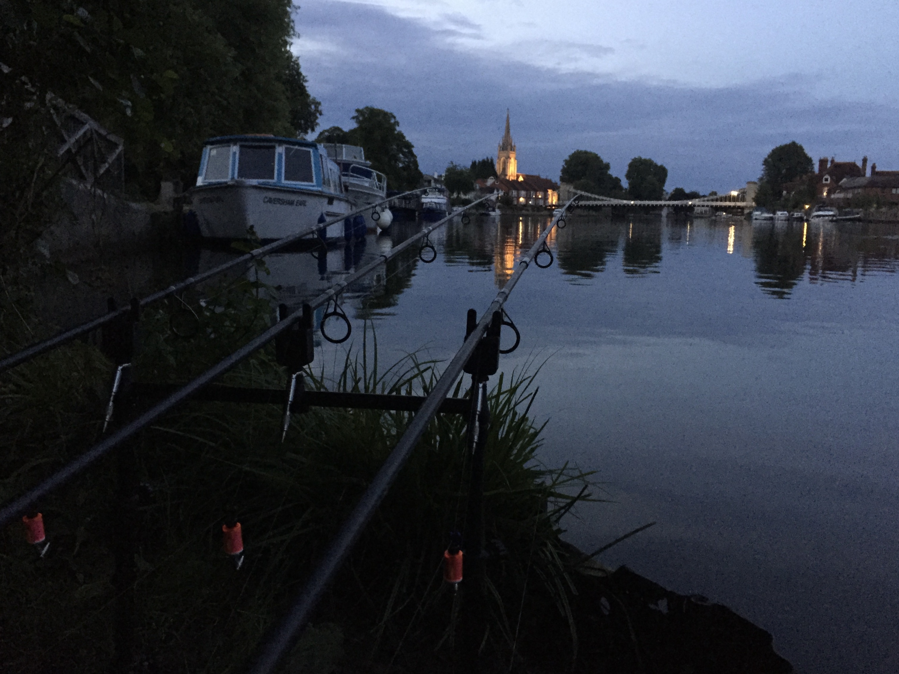 2017. Looking down the public park moorings at Marlow on Thames, towards the church and bridge. The former England goalkeeper David Seaman used to live in one of those houses over on the right. The Thames carp which he caught a long time ago, were from his garden. Lucky man. The second boat moored on the left in the top scenic photo, was the photo spot for the self take photos of the gorgeous underslung mouthed linear.