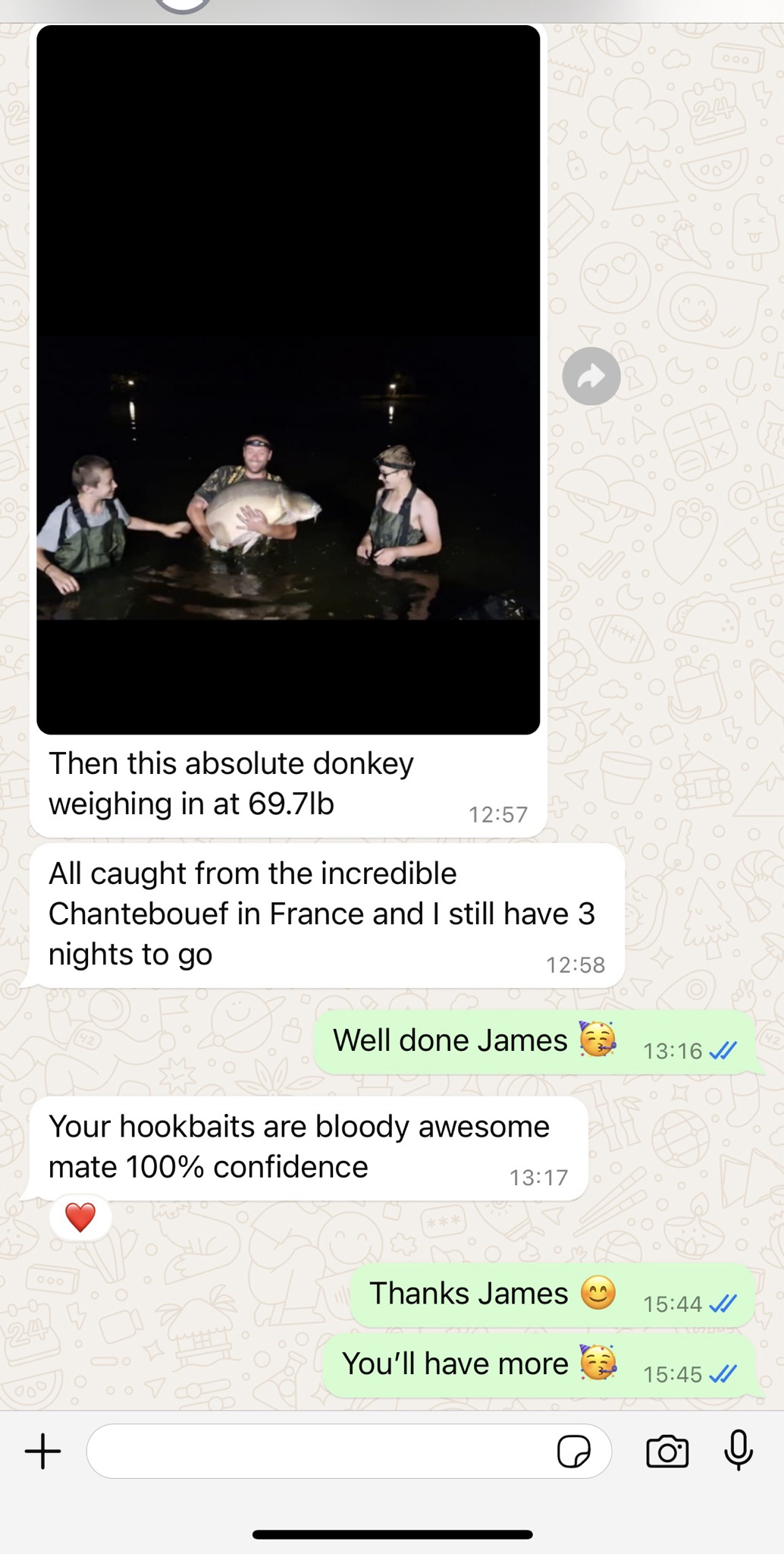 In reply to Post #11 What an amazing picture, them two magnificent fish don't even get close to the attire or the snout hanging from his mouth. Proper carpy 👌