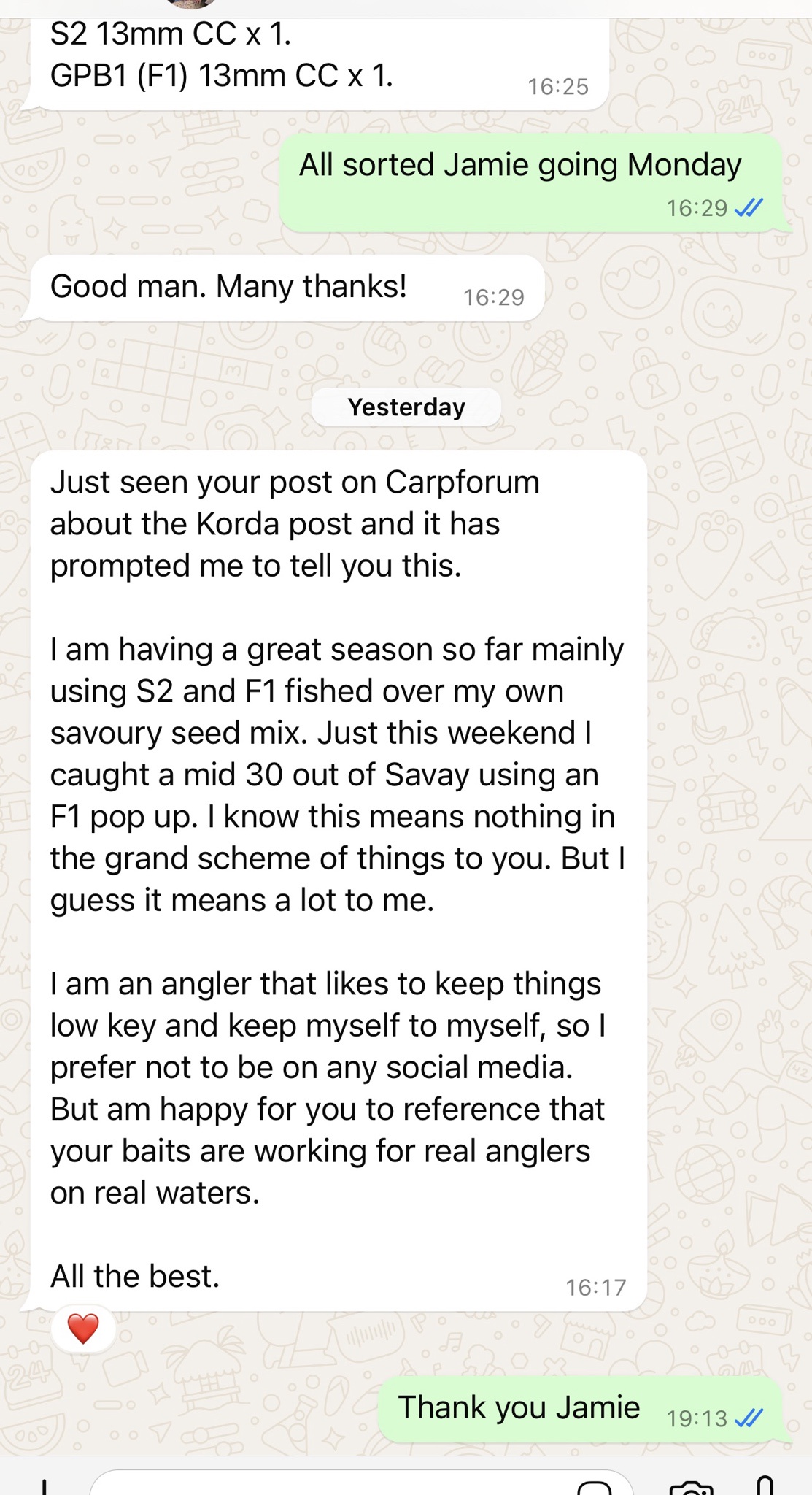 We just went through the busiest two week period we have ever known. We will be completely up to date with all orders later this week. The moment that we are, the S2 specials page is being added to the website this week. When this happens, there will be a price increase across the entire range of our hook baits. Over the next two weeks we will be stocking firstly, both the TackleBox & FishOn tackle shops with a range of our S2 & Garlic hook baits. As previously mentioned, to allow this to happen there has to be a small price increase going forwards. We are about to start stocking some of the other biggest tackle shops in the country on an on going basis too. There has to be a small price increase for all that to happen. We'll make less, but we will sell a lot more going forwards.