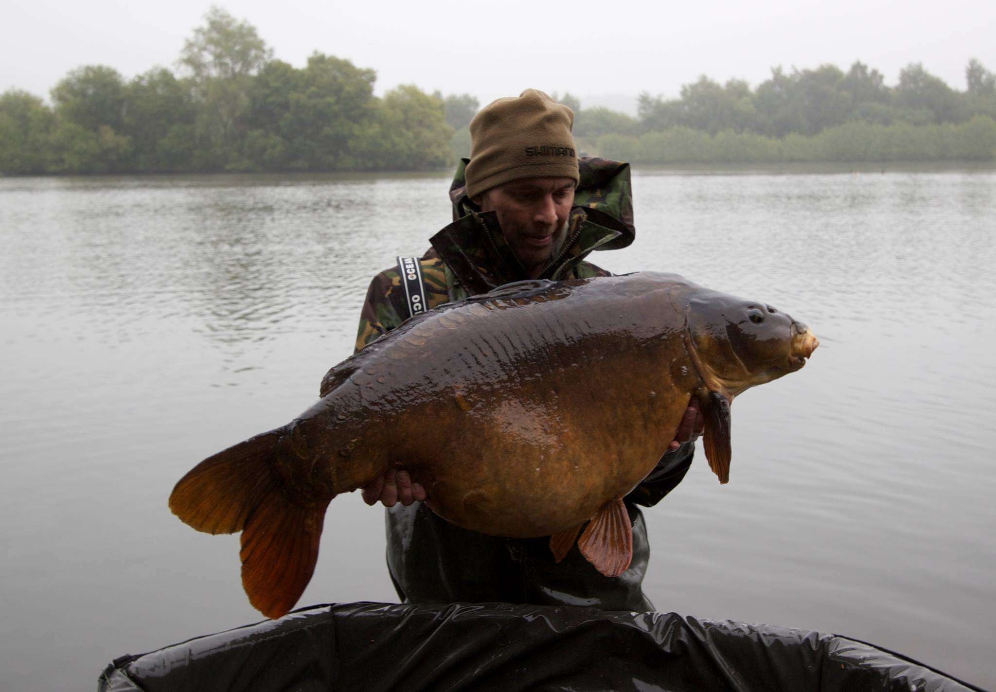 The following Spring after I was catching these fish from the Thames, a good friend was fishing a 270 acre pit with hardly any fish in. He was shown what I was doing on the river. He purchased the same rake himself, raked out a spot for the very first time. He instantly banked one of the biggest and most worthy carp in the UK by doing so.