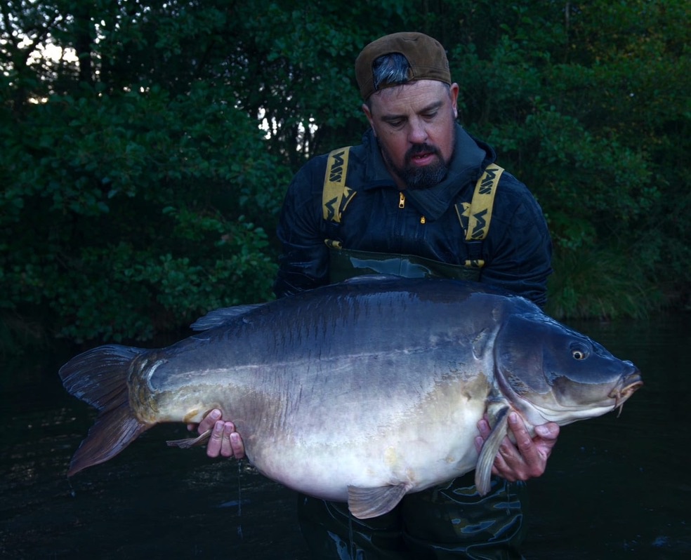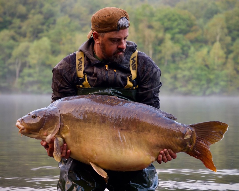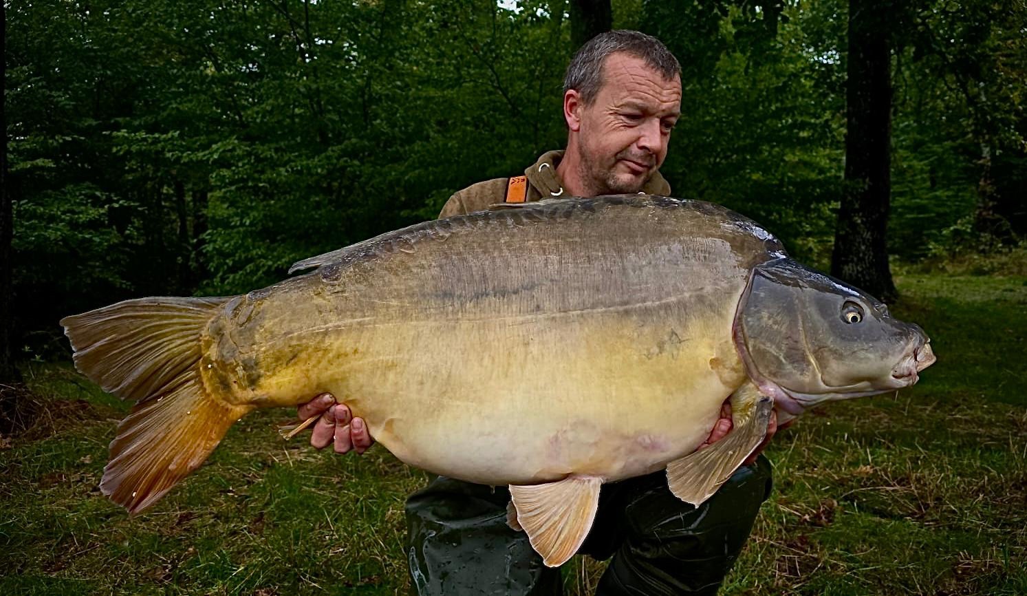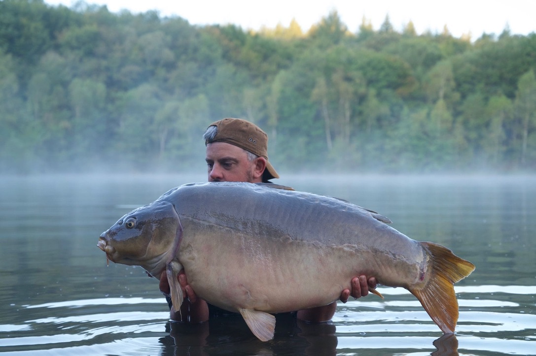 Andrew Parkinson, on his way back to the ferry. Biggest fish in a 200 acre French public venue 61lb+. On a single overnighter. GPB1