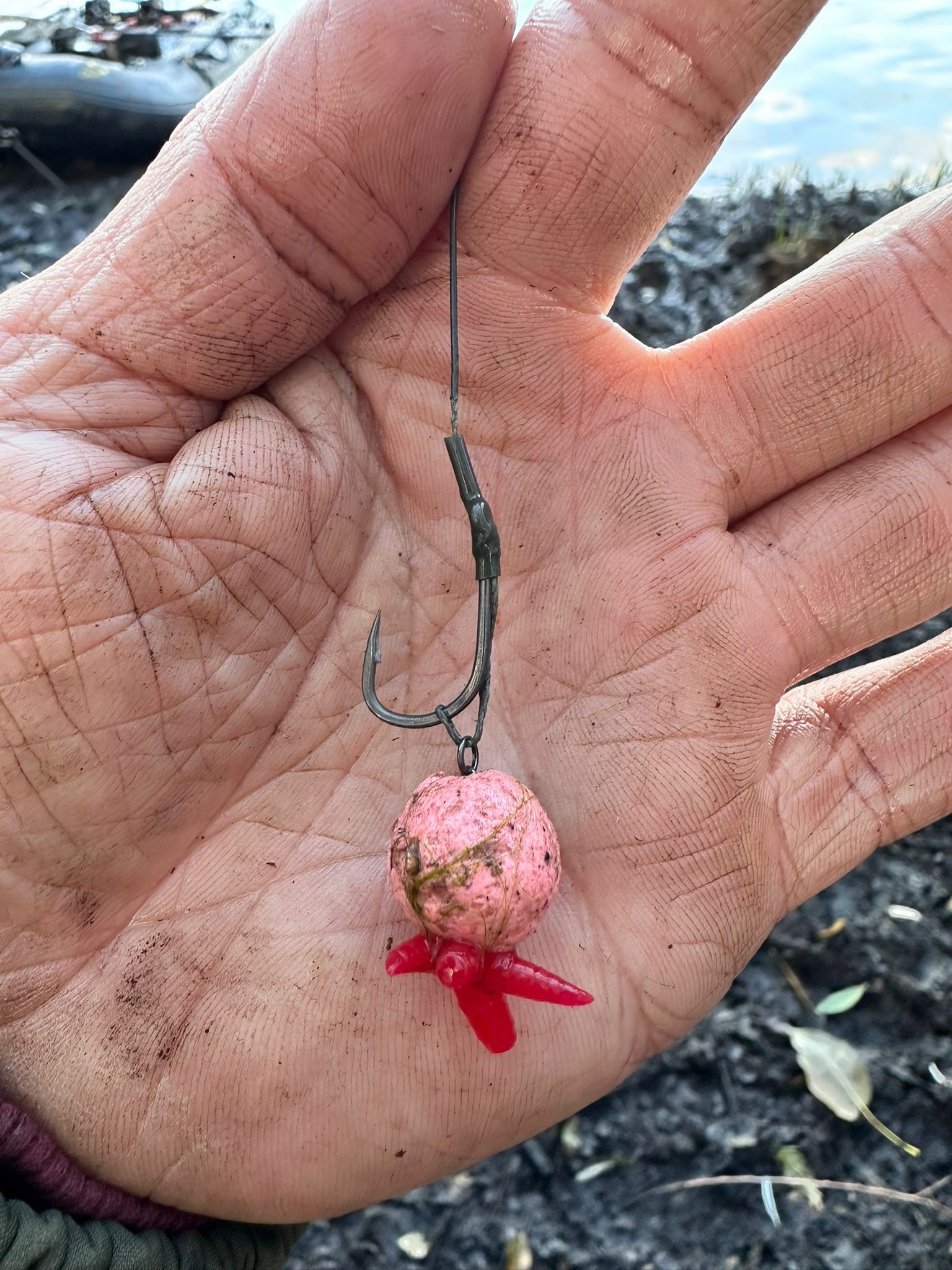 First time casting out three of our hook baits. The Scopex/Pineapple S2 on a spinner was the one which went.