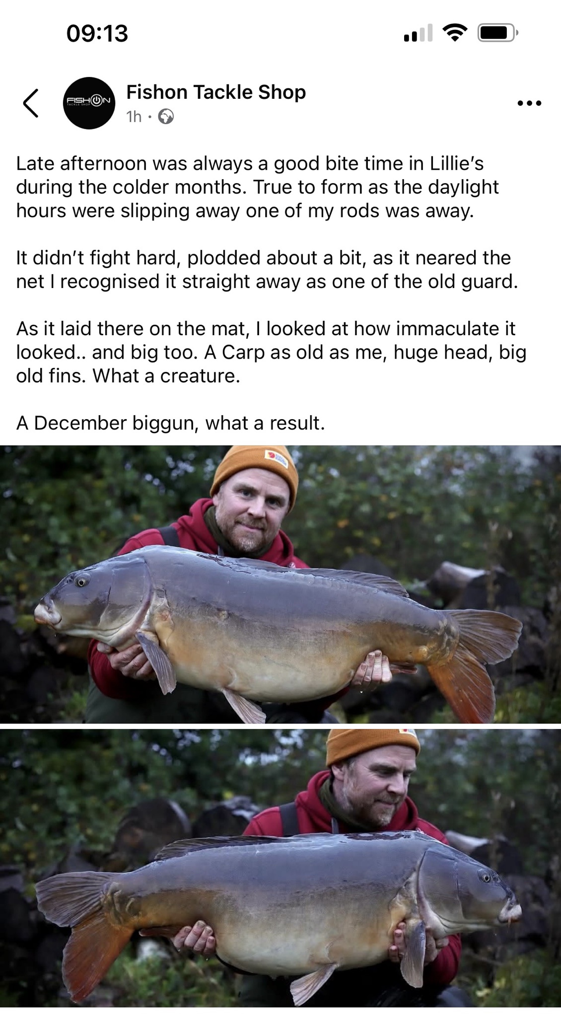 It was the biggest fish in the lake, the scarred mirror, one he really wanted to catch. Seriously well done Ben.