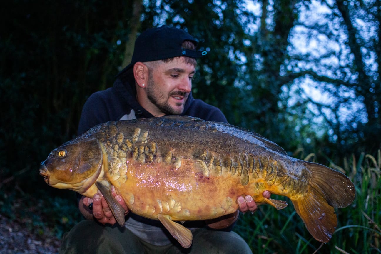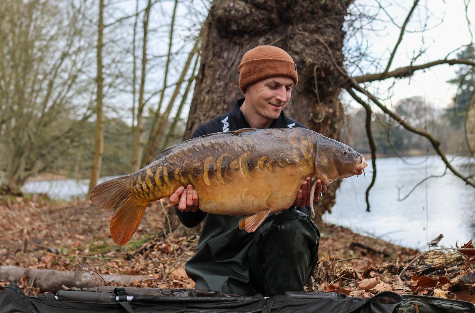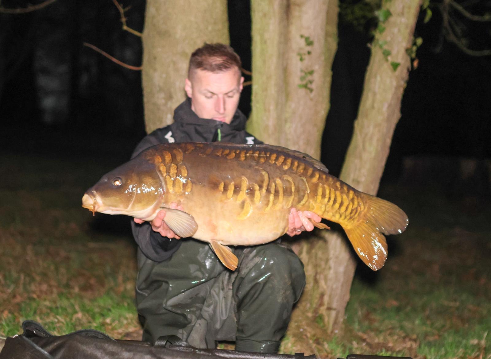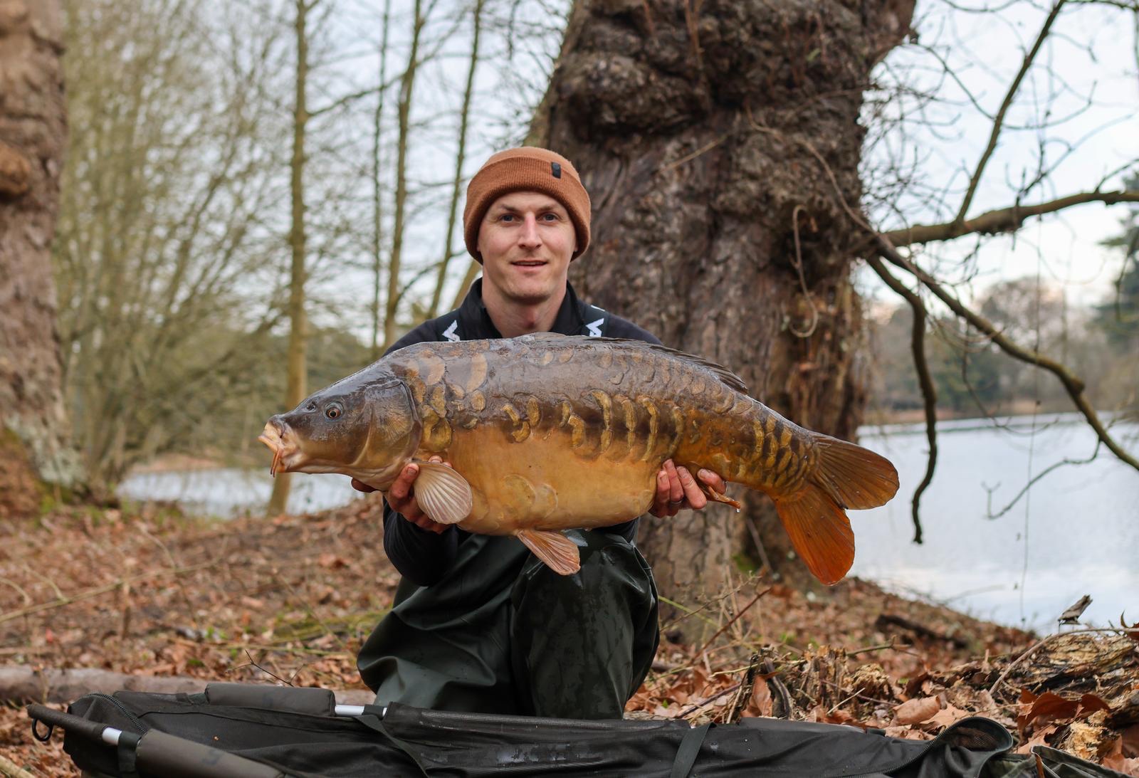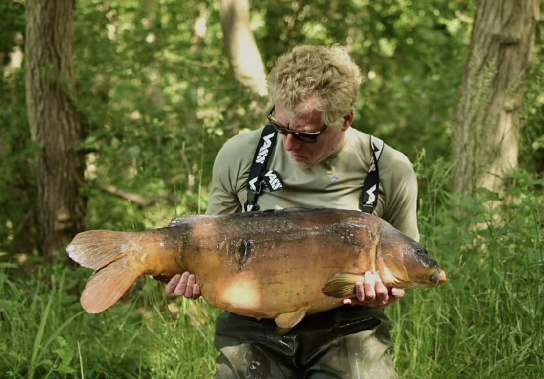 Richie fishing a new lake. Catching the special ones straight away. The first fish is a true Leney descendent. Both Banoffee S2.