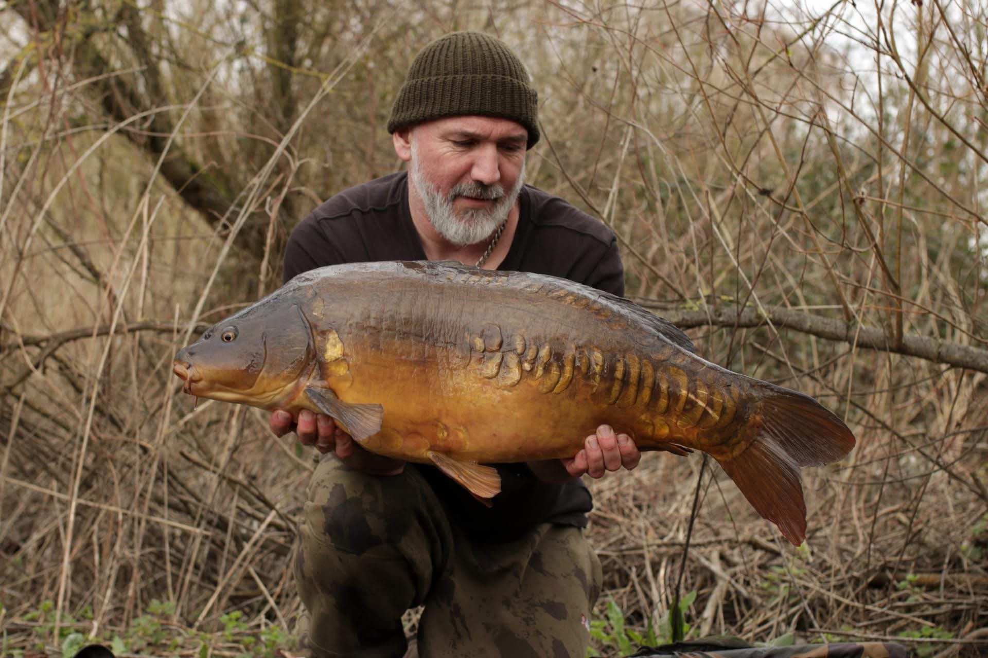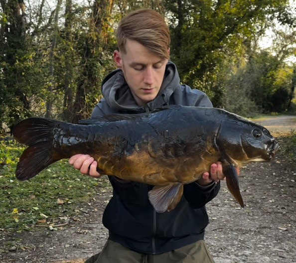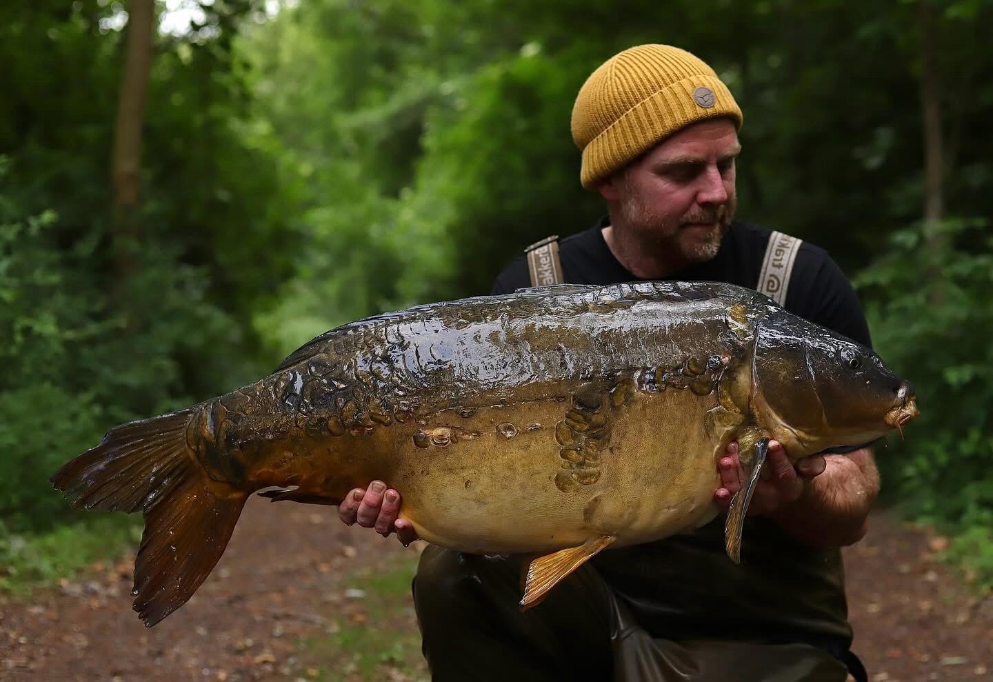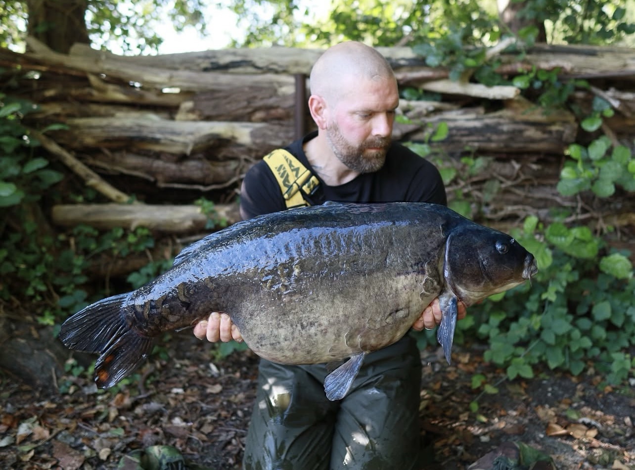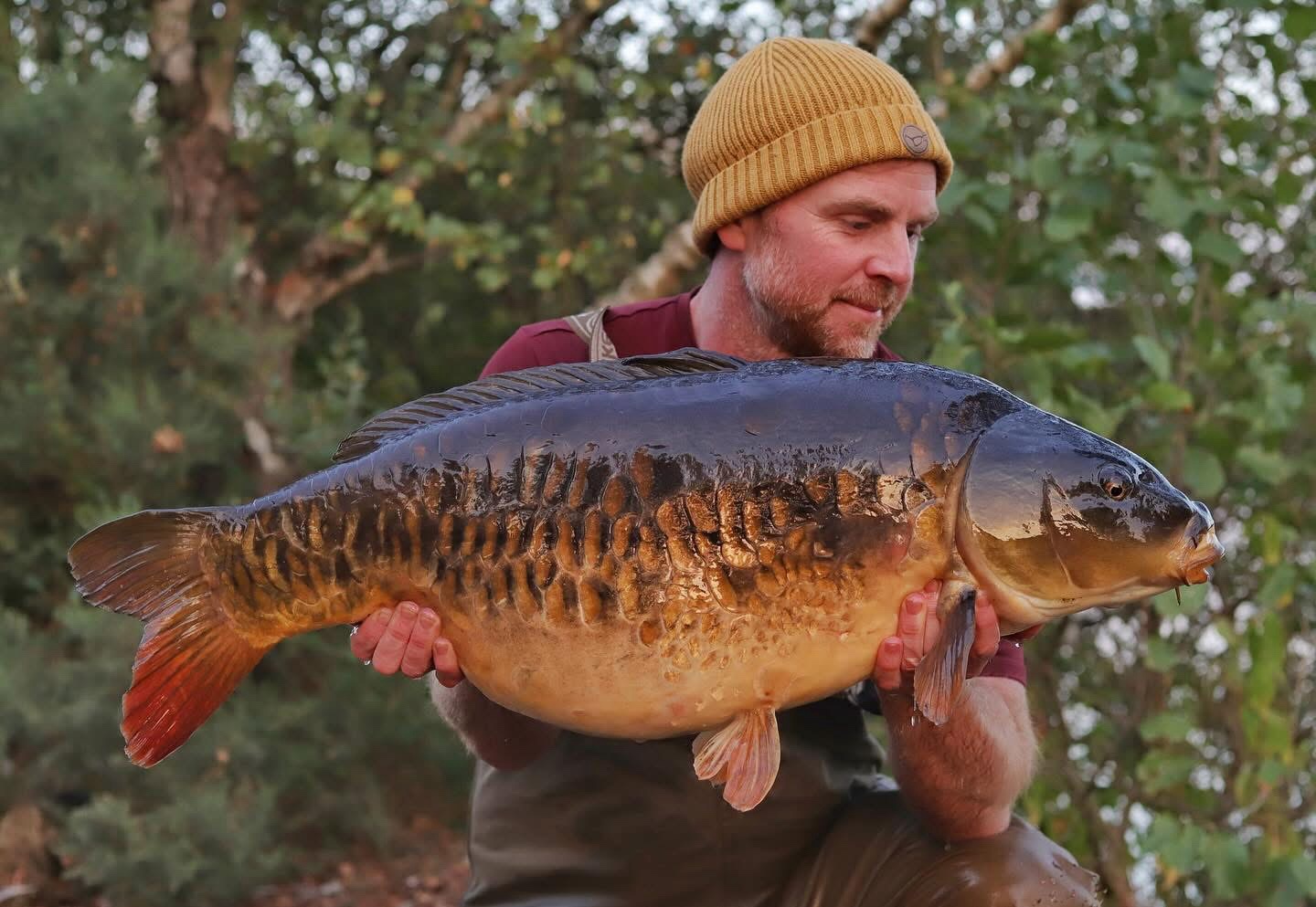 Richie fishing a new lake. Catching the special ones straight away. The first fish is a true Leney descendent. Both Banoffee S2.