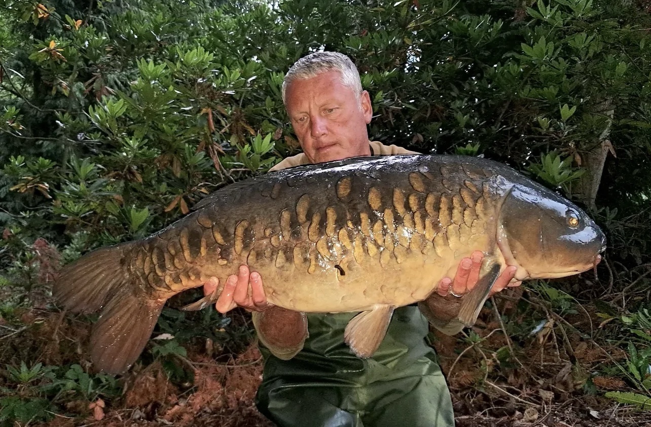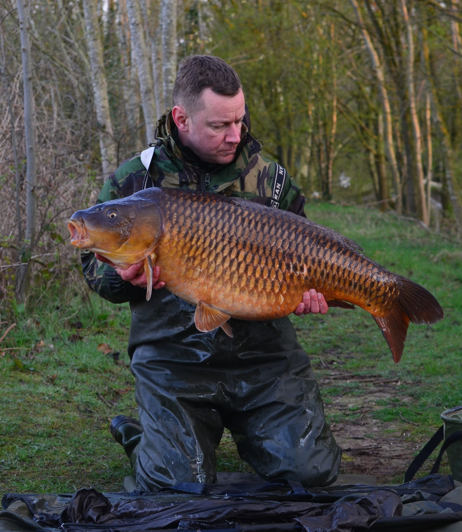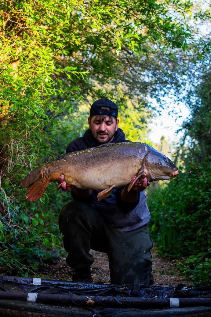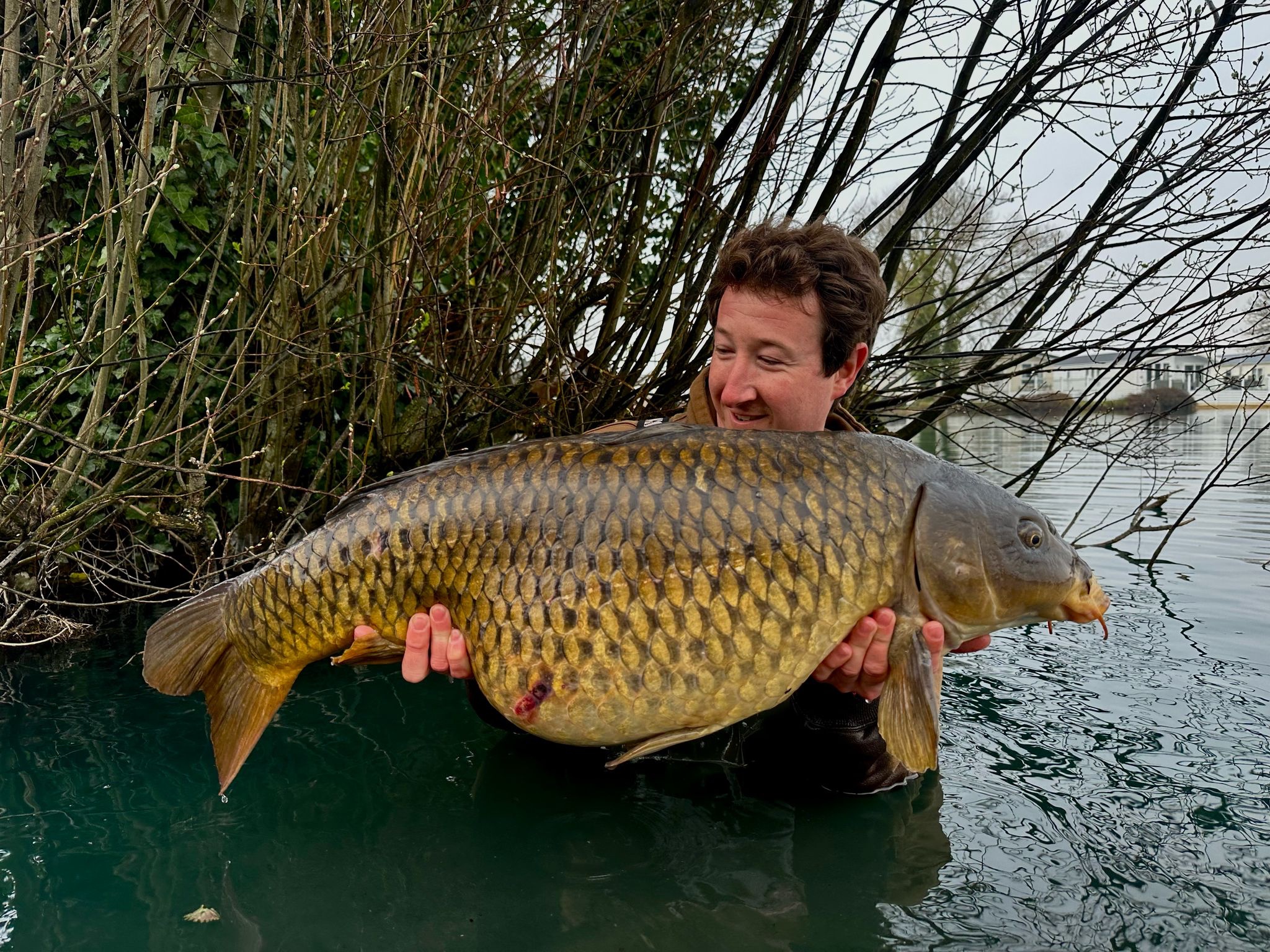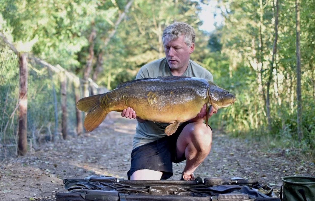 Richie fishing a new lake. Catching the special ones straight away. The first fish is a true Leney descendent. Both Banoffee S2.