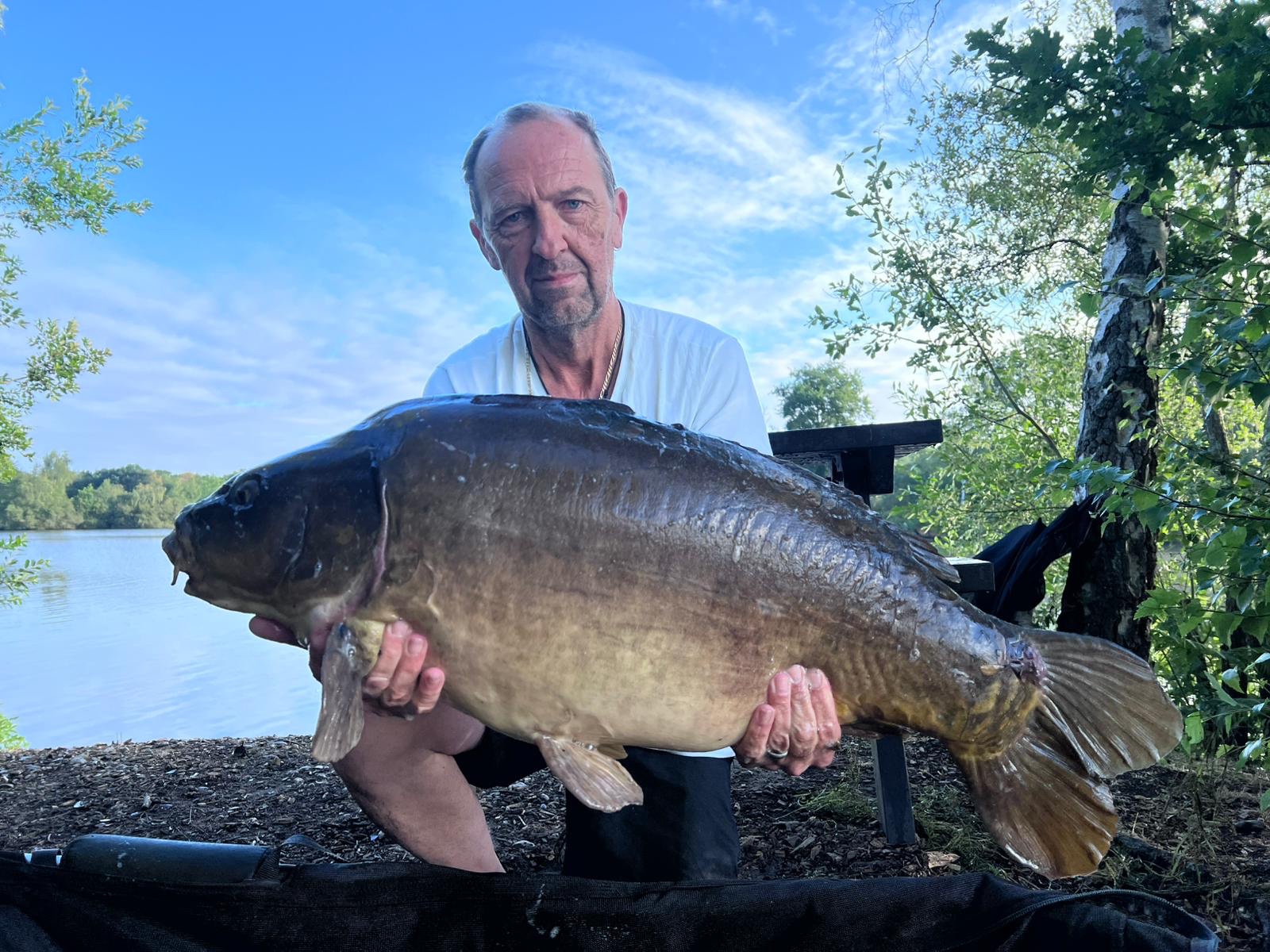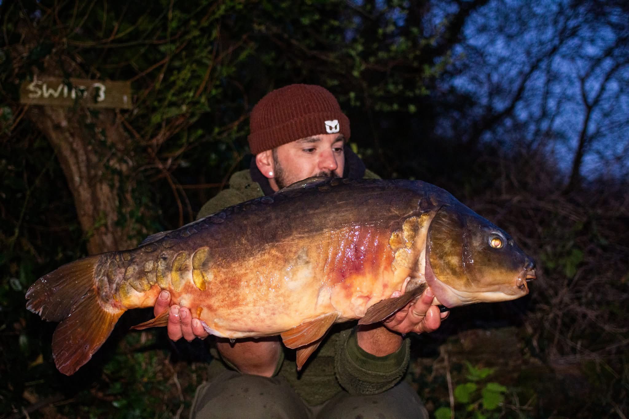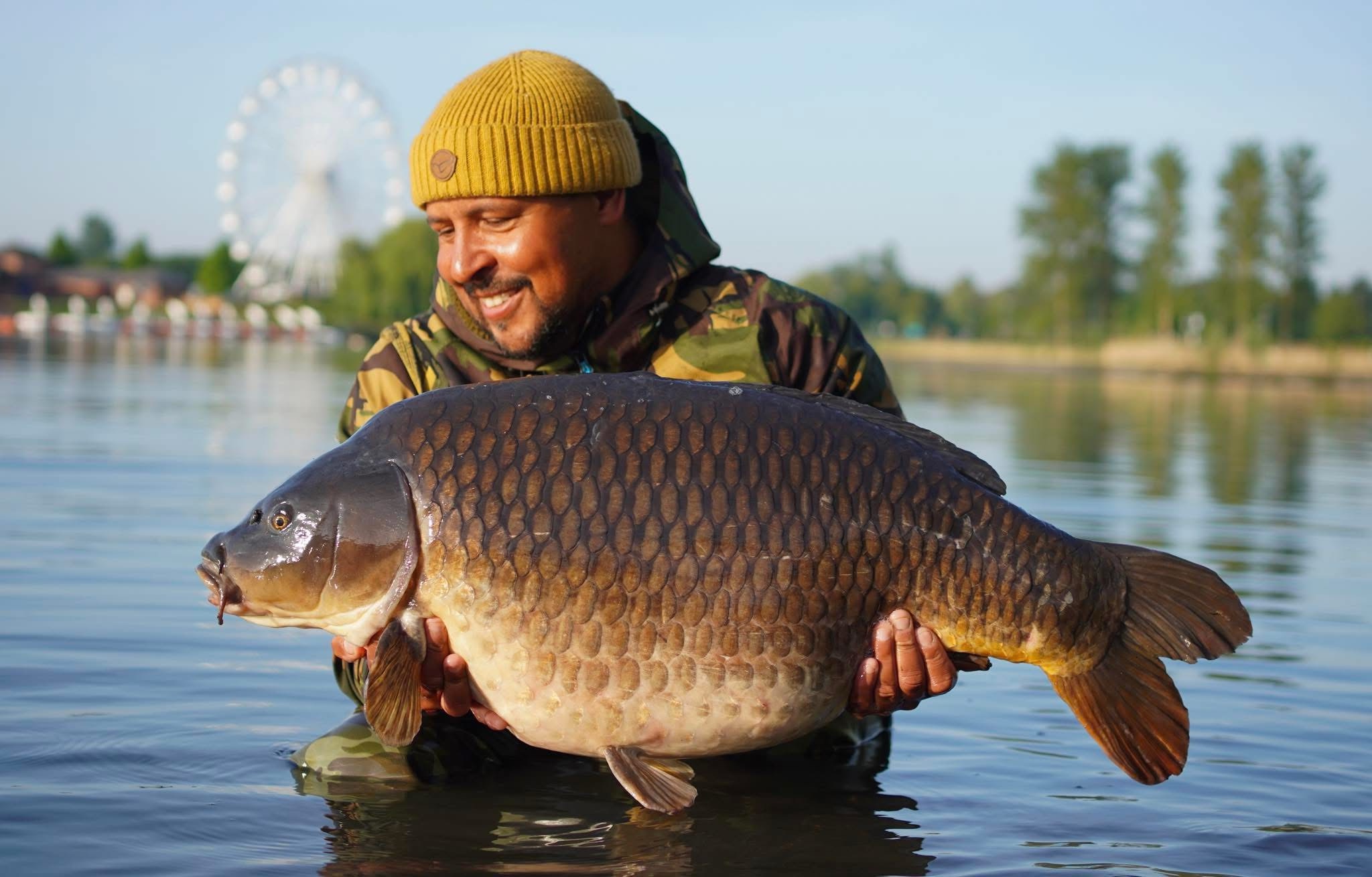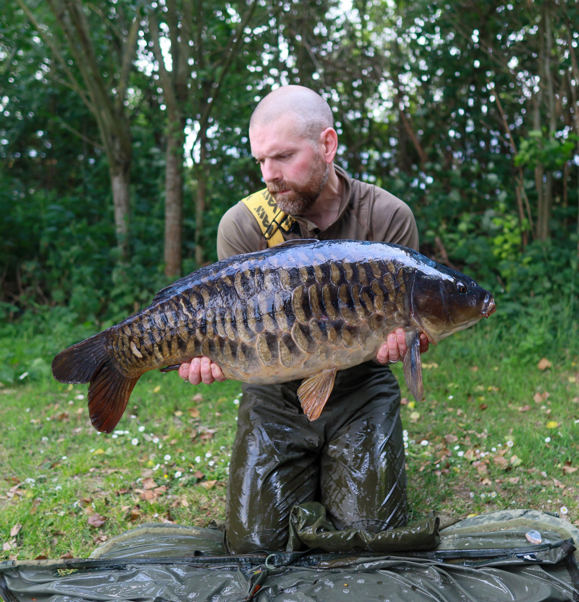 Richie fishing a new lake. Catching the special ones straight away. The first fish is a true Leney descendent. Both Banoffee S2.