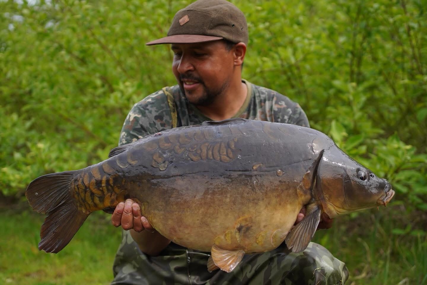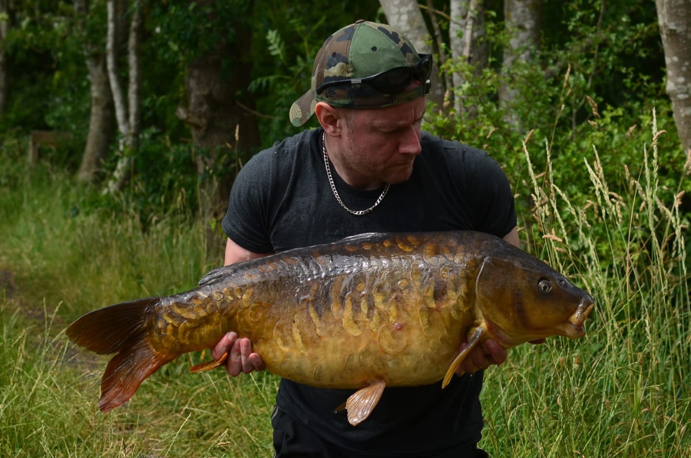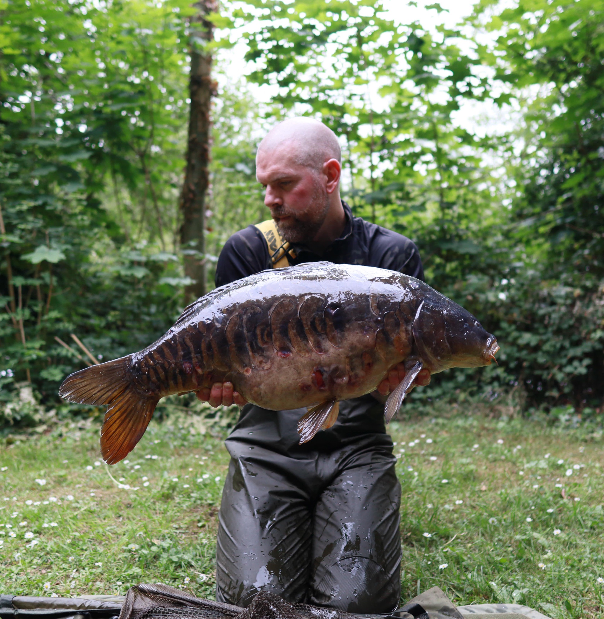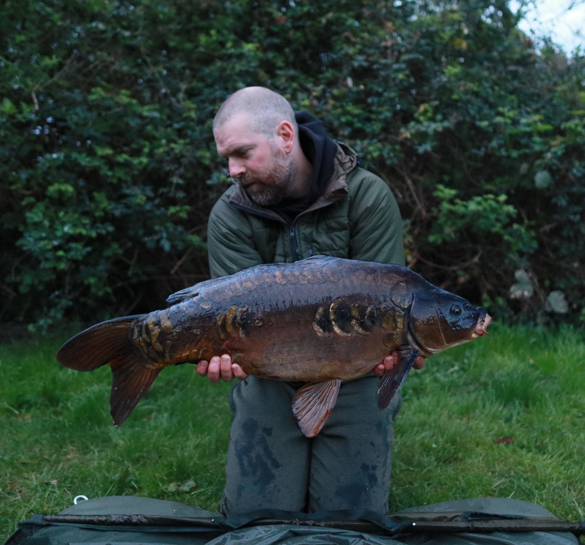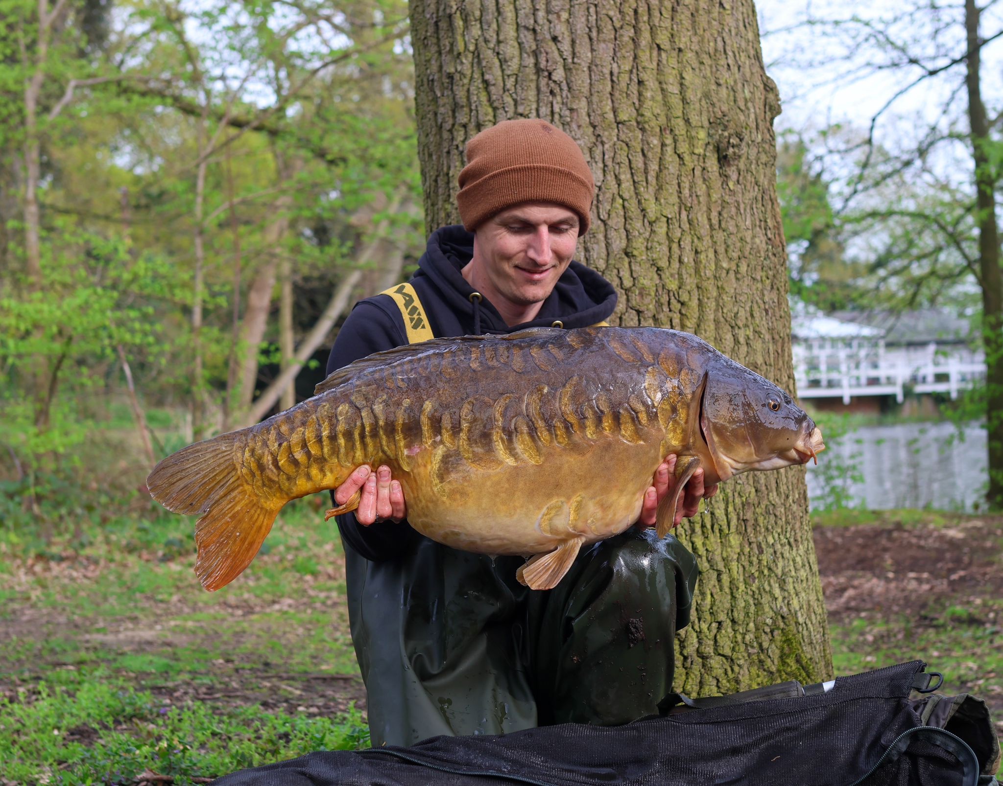 Richie fishing a new lake. Catching the special ones straight away. The first fish is a true Leney descendent. Both Banoffee S2.