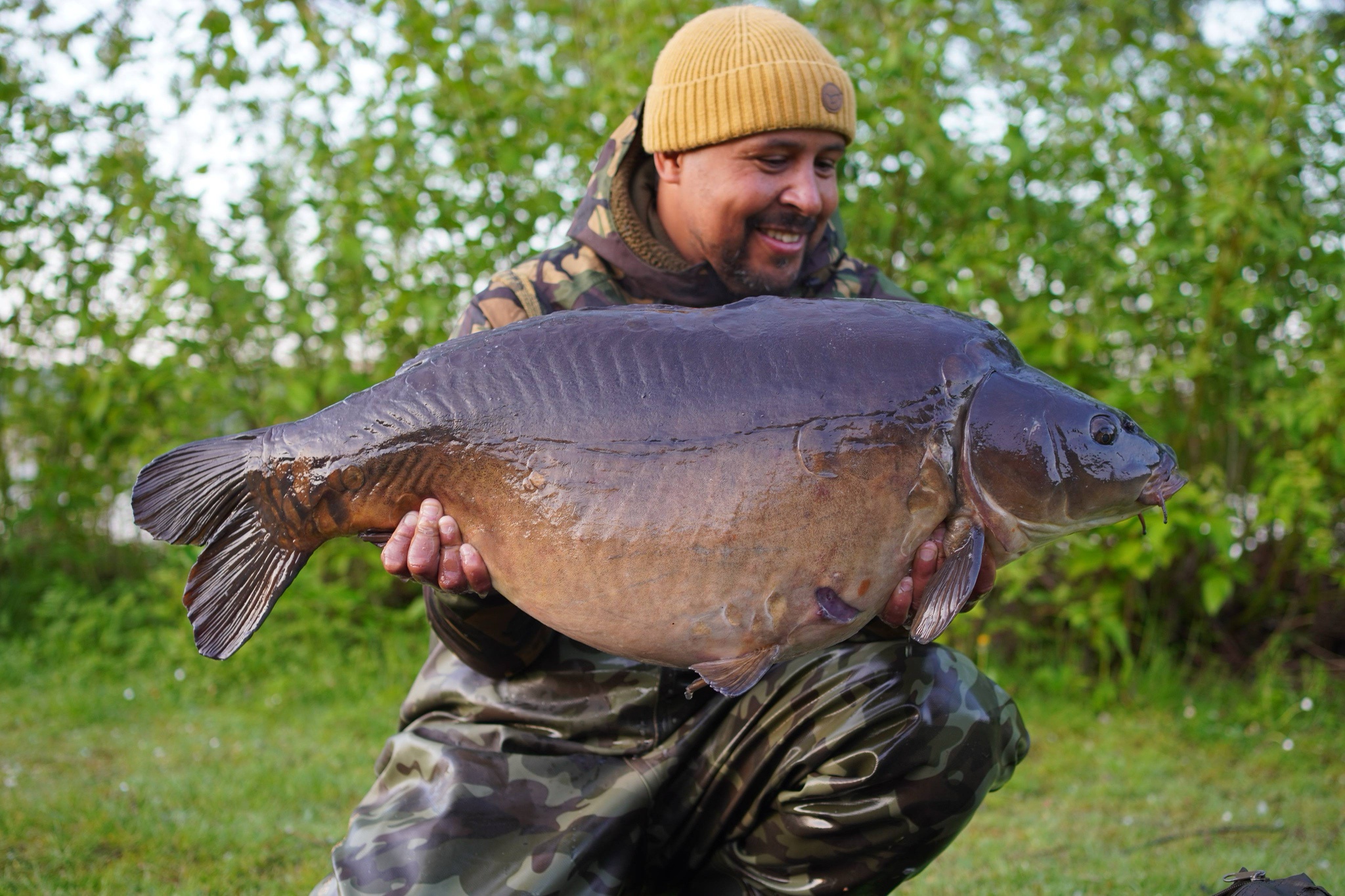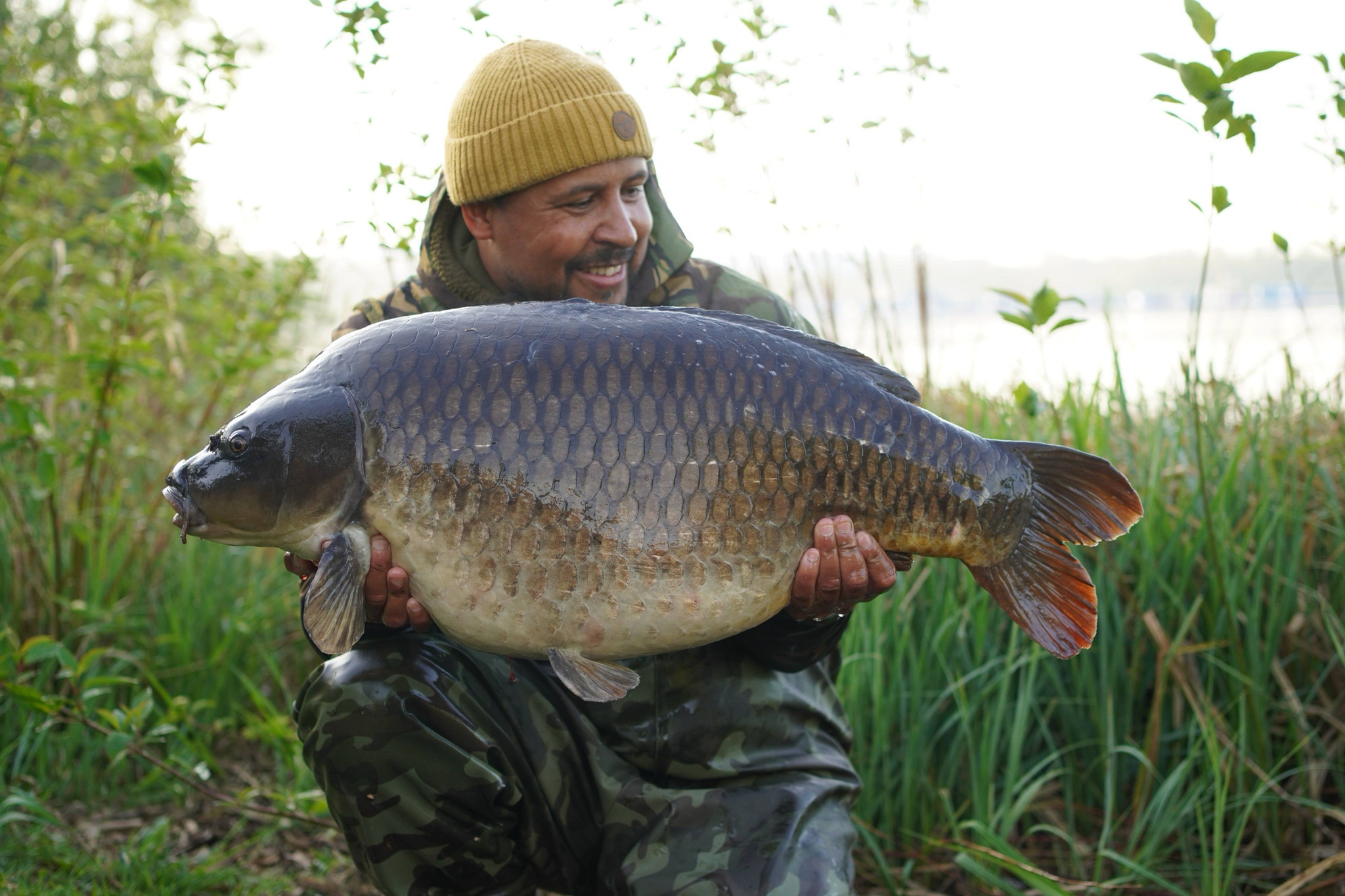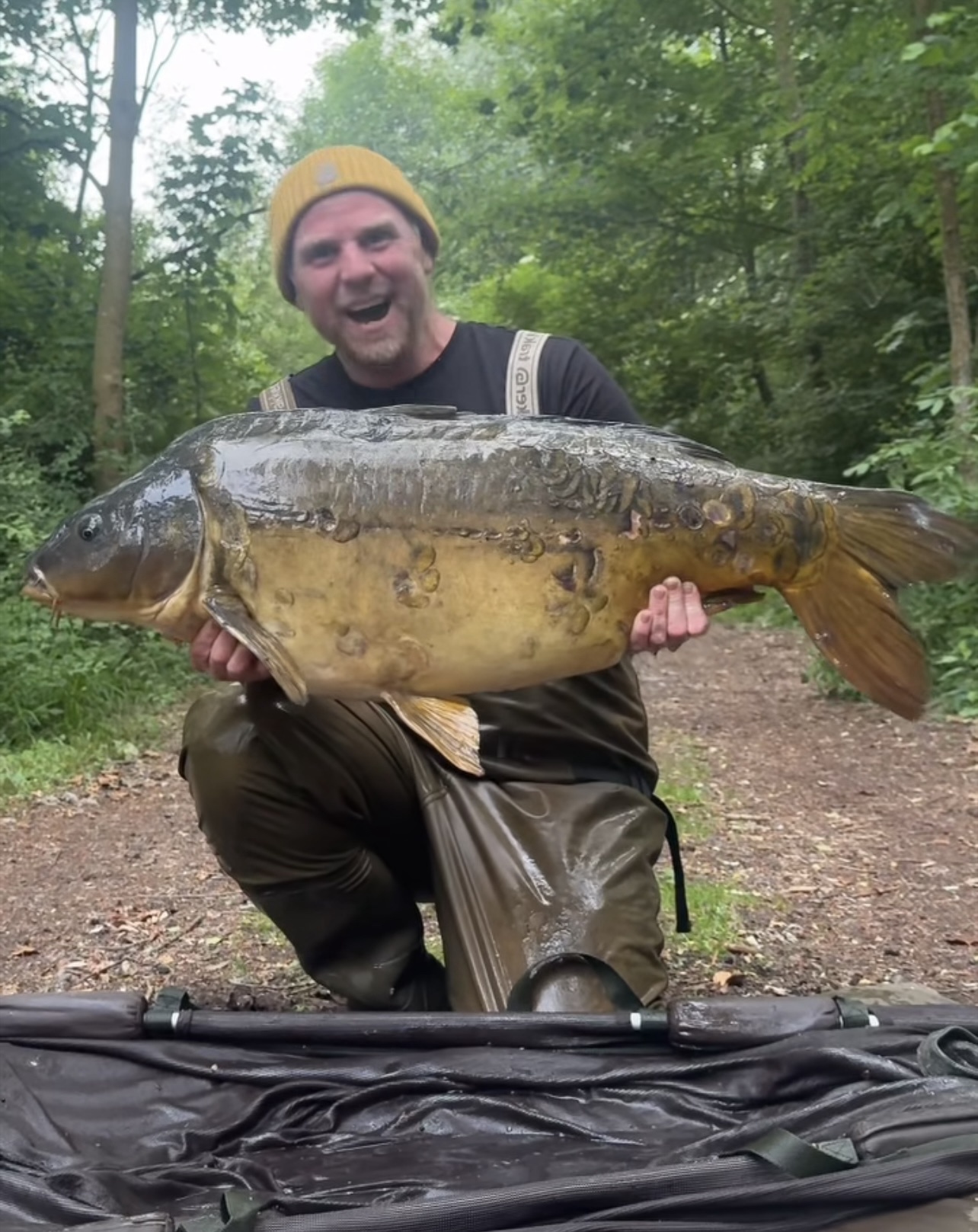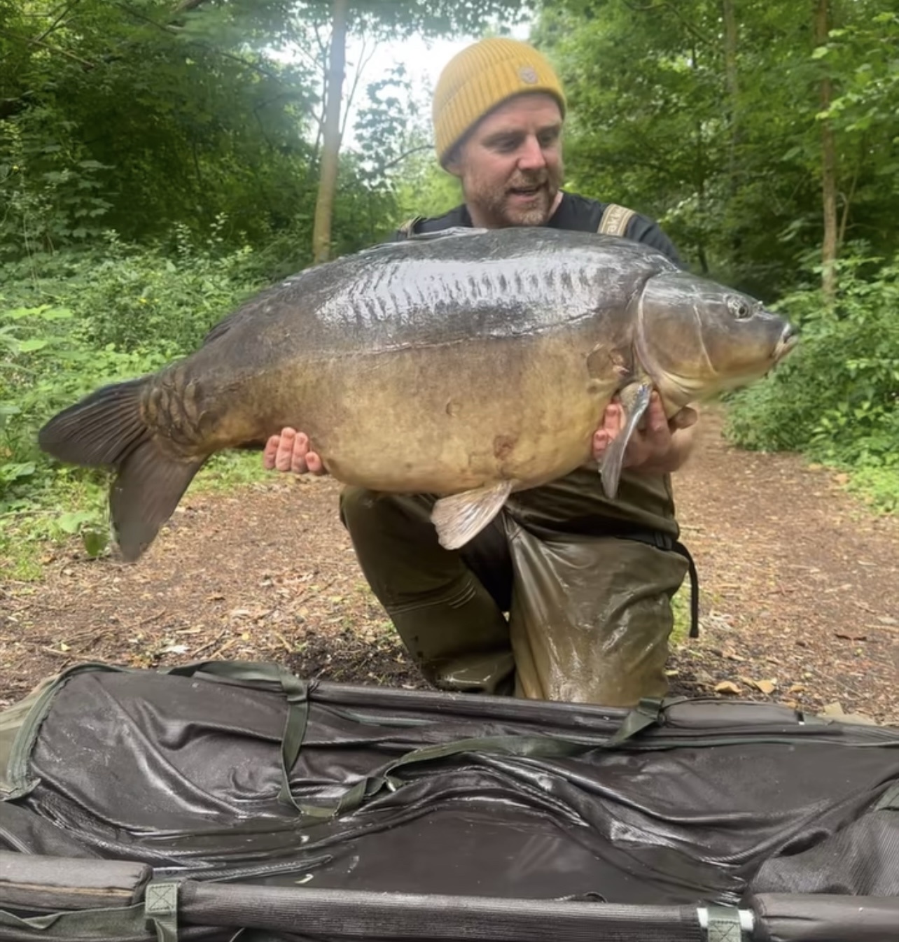 Richie fishing a new lake. Catching the special ones straight away. The first fish is a true Leney descendent. Both Banoffee S2.