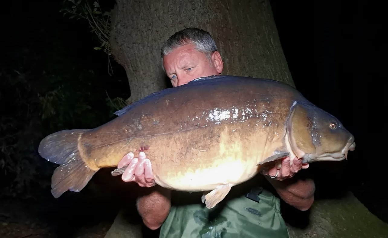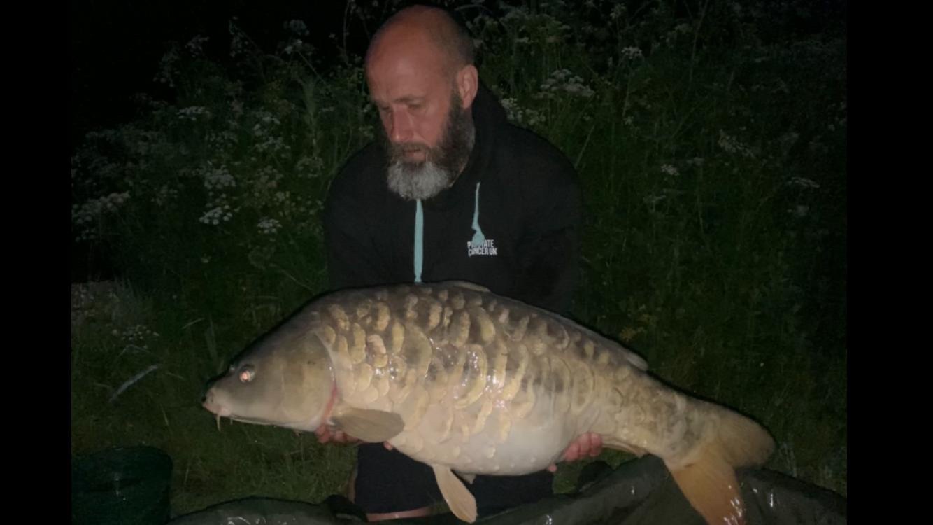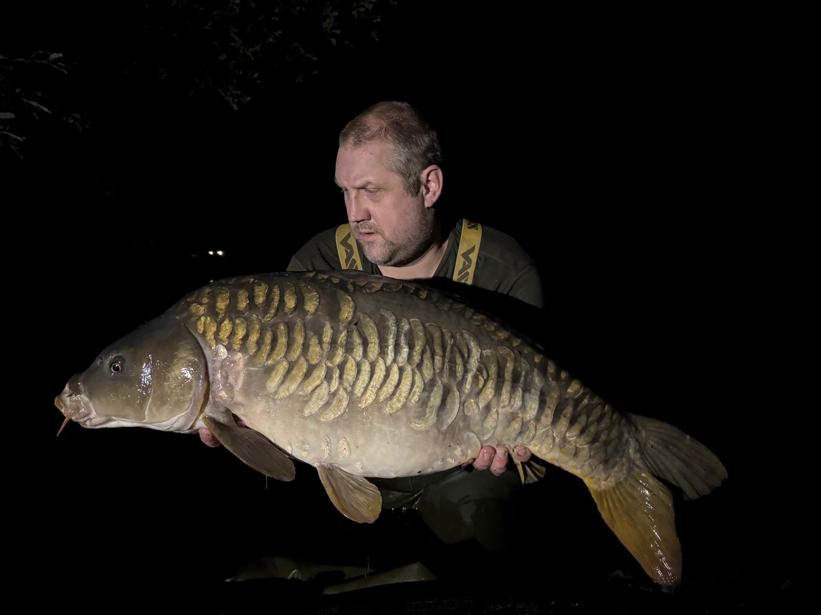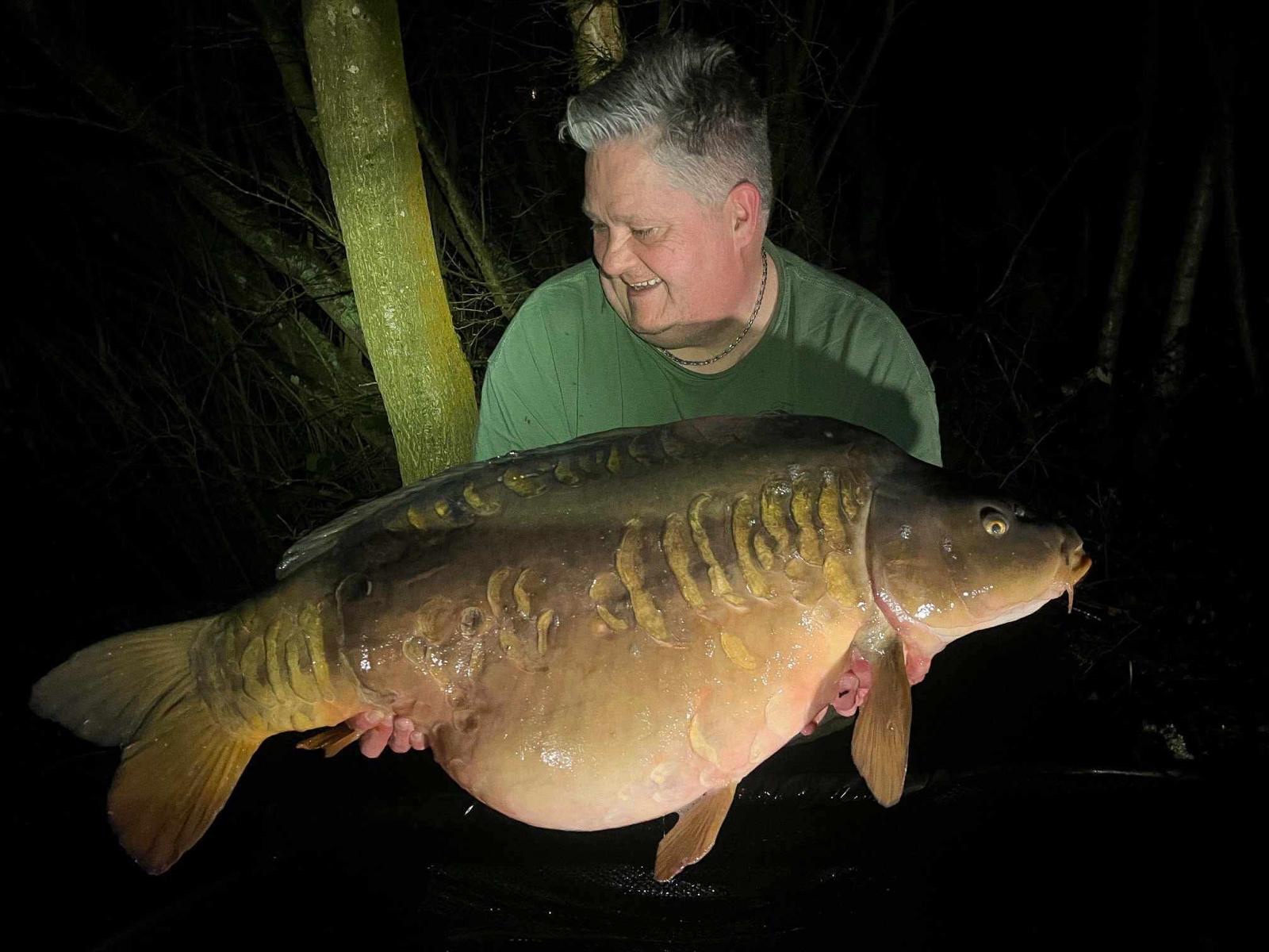 Jacko is on a social on Wraysbury South, on the island with all his pals. 39lb6oz. He's been told that's the biggest fish ever landed from the island.