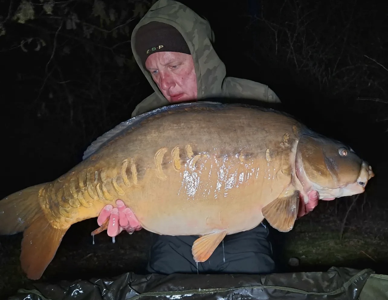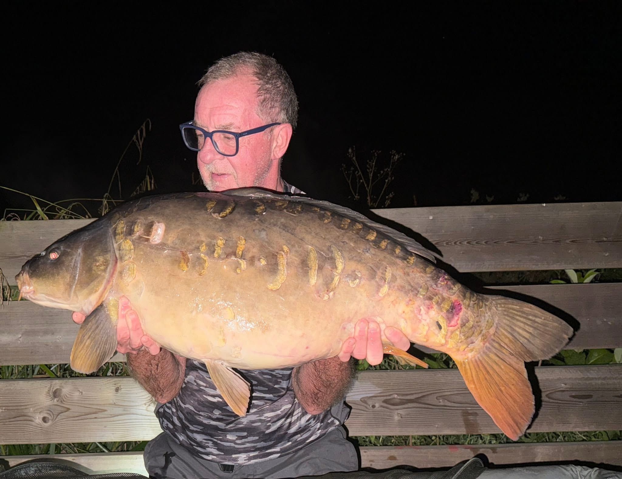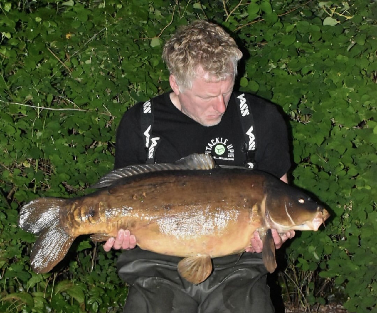 Jacko is on a social on Wraysbury South, on the island with all his pals. 39lb6oz. He's been told that's the biggest fish ever landed from the island.