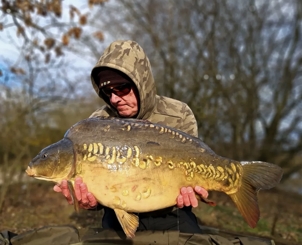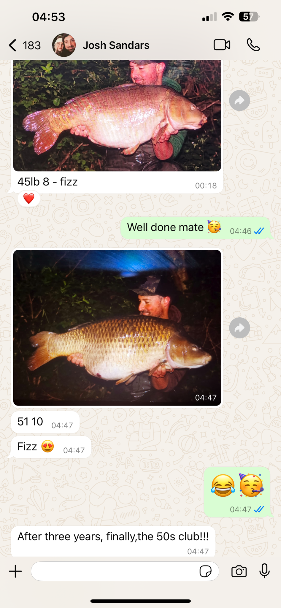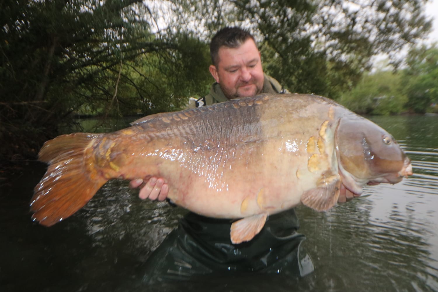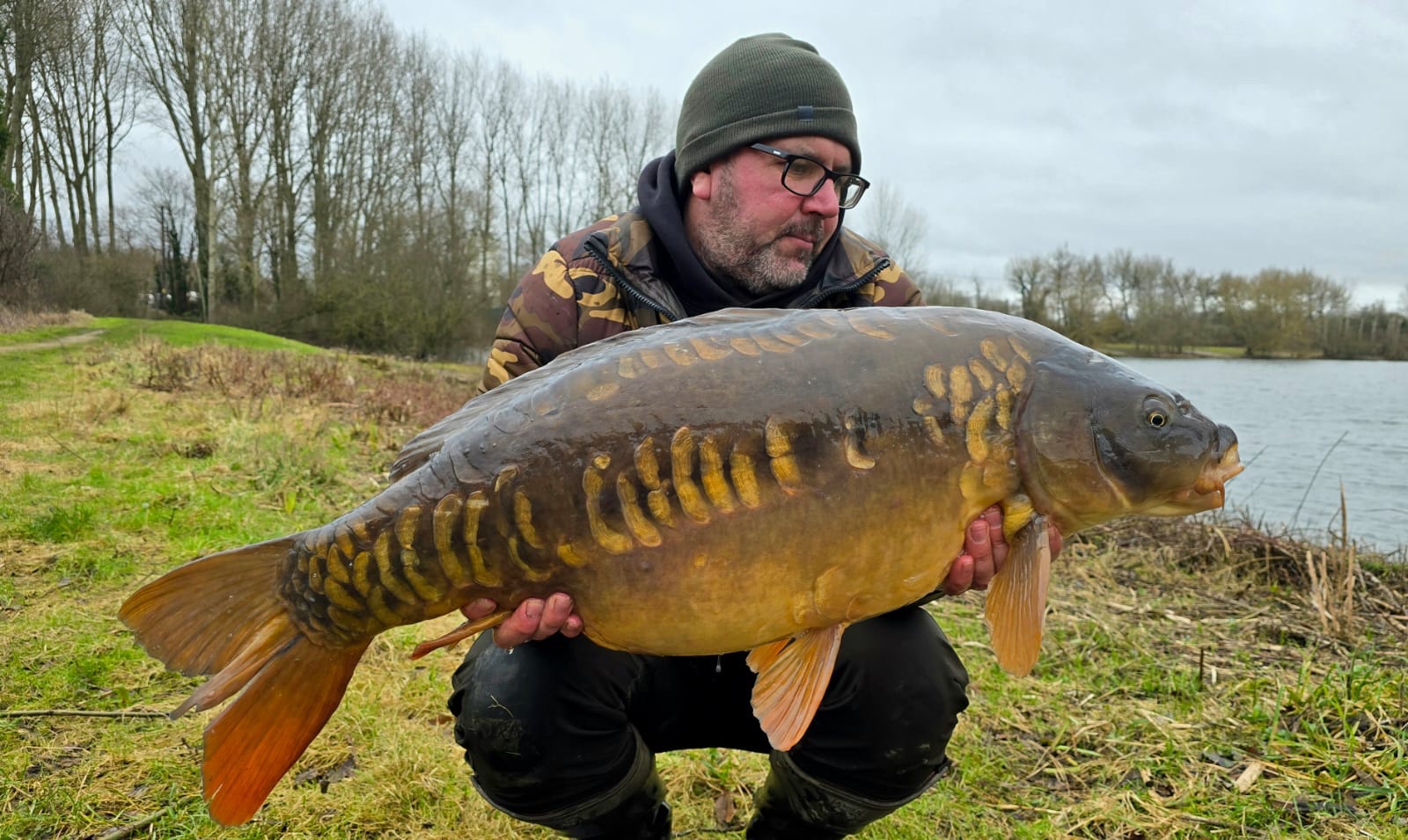 Jacko is on a social on Wraysbury South, on the island with all his pals. 39lb6oz. He's been told that's the biggest fish ever landed from the island.