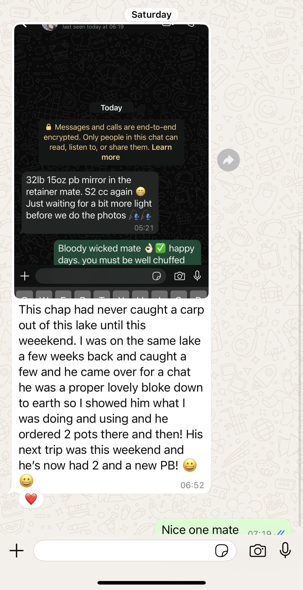 I'm in the very fortunate position where our products results do the speaking for me. I do not need to court the media. I don't need a Teflon smile. I do not need any of you to even like me. I do not need to plow Faceache or Insta. Used to, to get the word out. But our customer base incapsulate the more long standing, better class of carp angler.... And they, via the grapevine are always capable of finding out all the information for themselves, without the internet. Word of mouth is king for long term customers in this game. The internet is not. If a man watches his best mate turn into TH over night, the first few times he uses our stuff. Him, and then all his mates become customers for years and years, or even life. People can chat all of the chit they want on the internet. Nothing can ever stop or even slow that down. You only realise that personally with time.