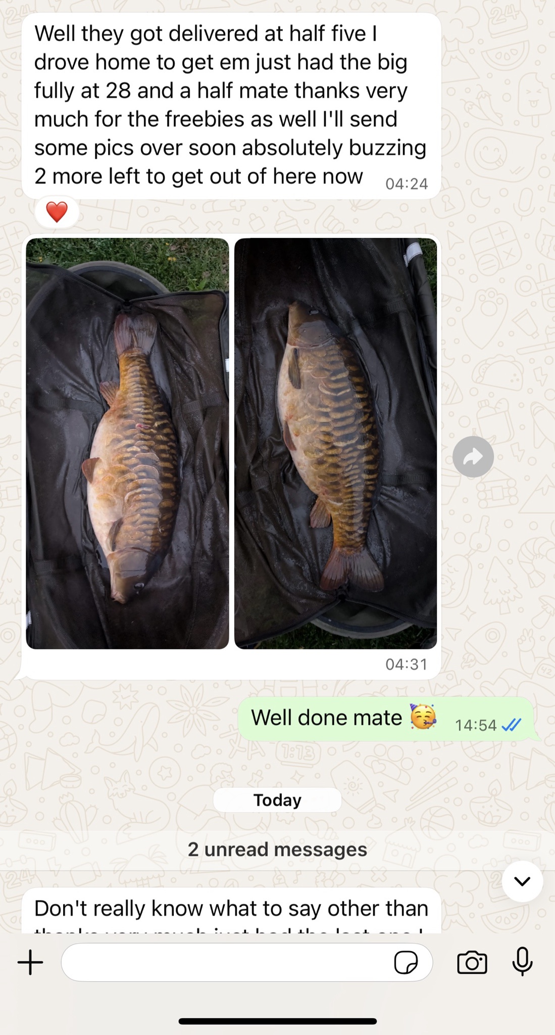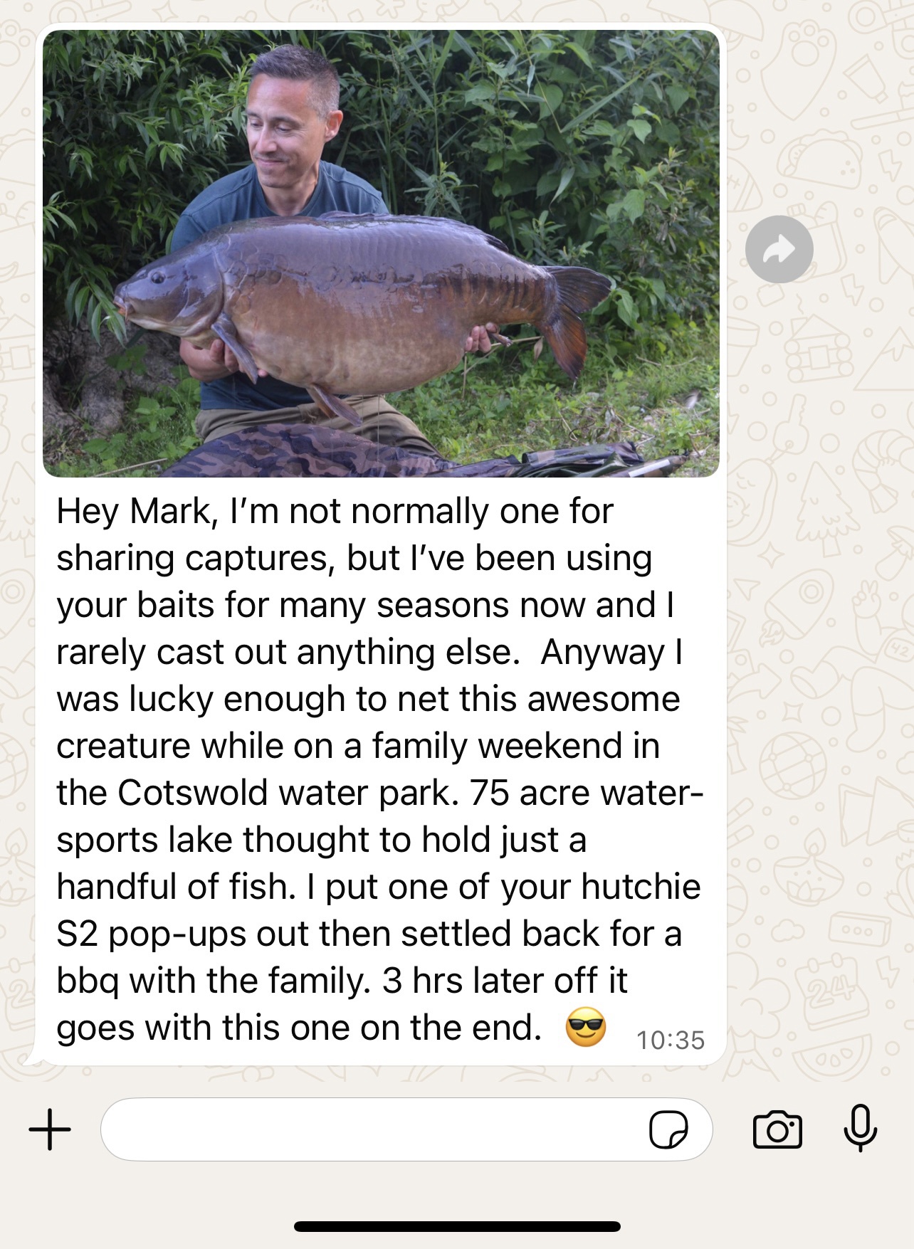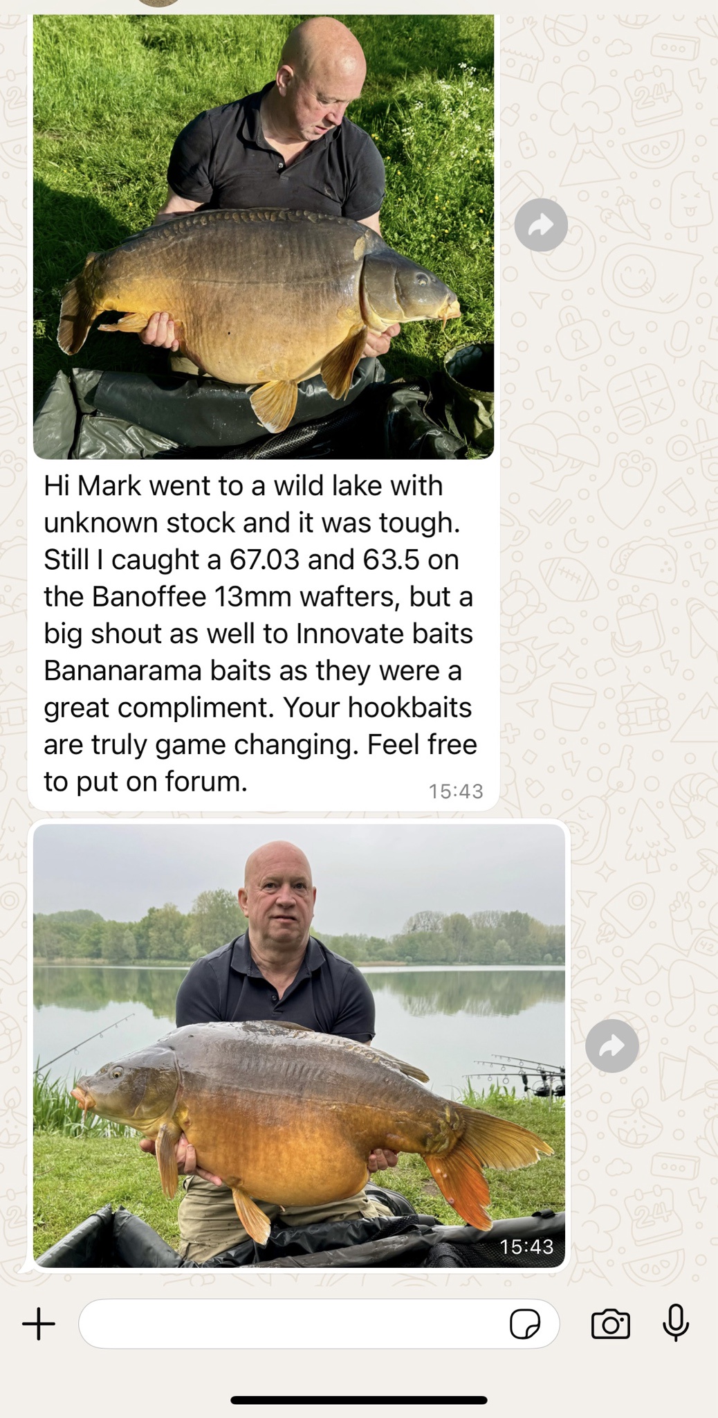 Message from Mick, opened after my last post on here. I hope he does not mind me showing it. We get these messages all of the time. I just do not show them. It's also exactly what the TackleBox, FishOn & JohnsonRoss new customers are returning & telling the shops constantly. Well done Mick, that's a gorgeous big carp!