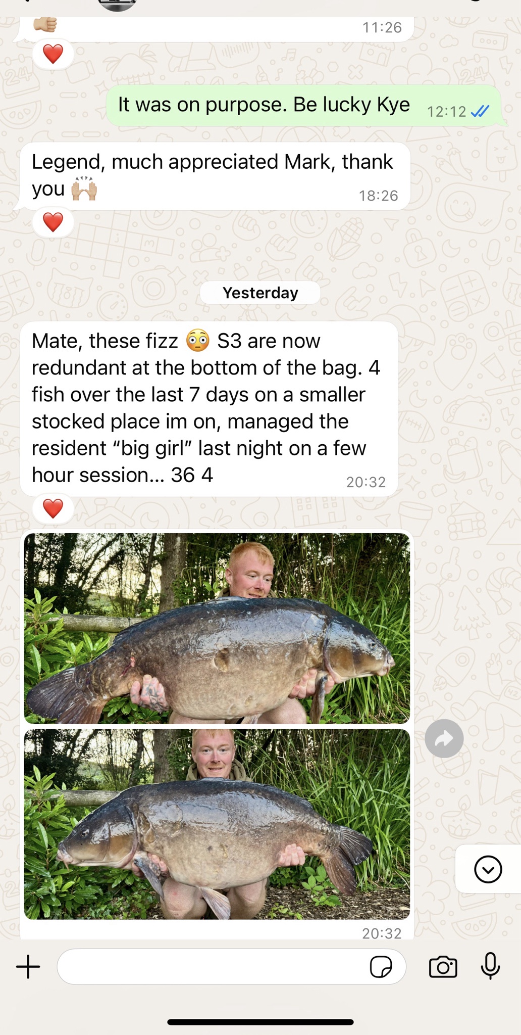 The 38+ that Russ lost off his camera last week. Banoffee S2 over Essential Banana freezer baits.