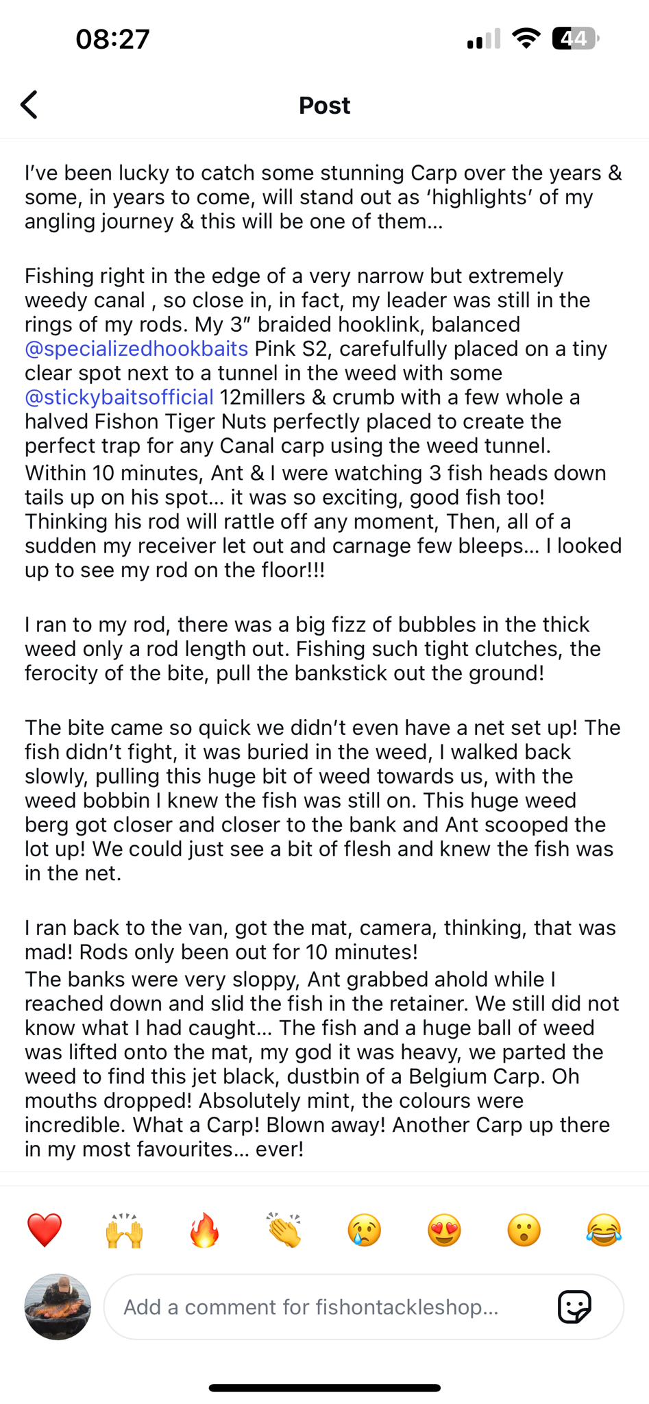 At the moment though Carl we are having enough trouble supplying what we could already be selling of our current range. All three tackle shops are selling out as fast as we can supply the stuff at the moment. We are blowing through stock ourselves from our own website at a truly stupid rate. We are about to have another large expansion early this winter. We will be double the size again by Xmas. I have to make sure that we can supply the shops with enough of our stock whenever they want it, so our stuff is always on the shelves in 2026. That's the number one goal at the moment. I cannot personally go on, the way which I have been in 2025 either, or I'll drop down dead from exhaustion. I work sixteen hours a day, seven days a week in the UK. Doing that for six to eight weeks at a time without a single day off, really takes a harsh toll on your body. It does not matter how much wonga you are earning if you are killing yourself by doing it. The most important thing for me at the moment is exactly what the JohnsonRoss boss said yesterday. Customers coming back, who can't believe what is happening after using them for the first time. Talk is cheap. That is real. You lot already know how good the stuff is. Hundreds & hundreds of other carp anglers, are currently just finding that out now.