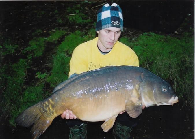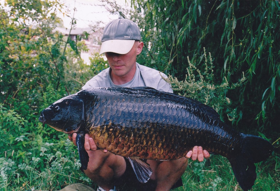 Scan of print. Around 1997/98. River Thames, Hampton sailing club, Hurst park. My personal favourite ever carp, a common too. My first Thames 30lb+. One of a number of carp I caught around the same time, which I never saw photos of anyone else holding. It had the membranes still intact inside its mouth, they were thicker and more rubbery than its outer lips. The house behind my shoulder is on an island. That's the ferry/boat yard owners house who i mentioned previously.